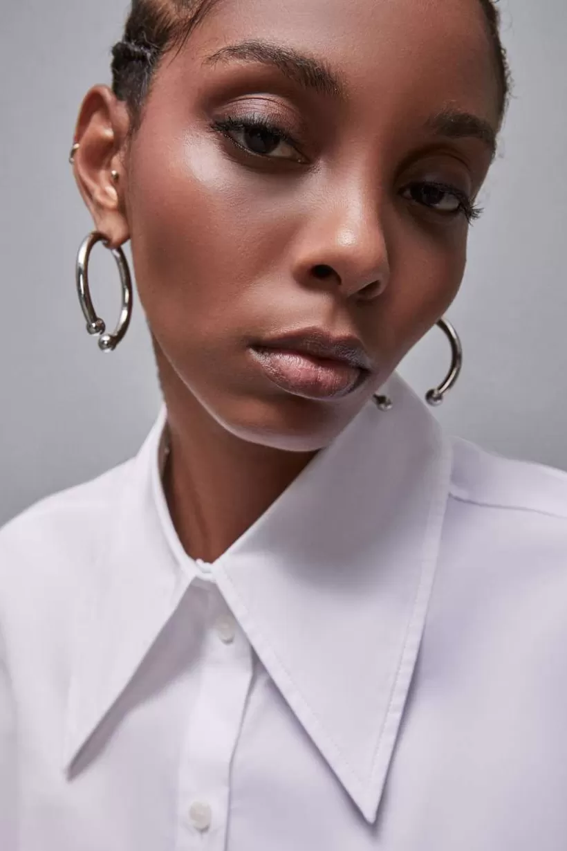 Uniwersalna, szykowna i zawsze na czasie: koszula z elastycznej bawełnianej popeliny pozwoli Ci stworzyć różnorodne stylizacje o wyrafinowanym uroku. Kołnierz z maxi czubkami pozwoli Ci stworzyć wyrafinowane stylizacje.