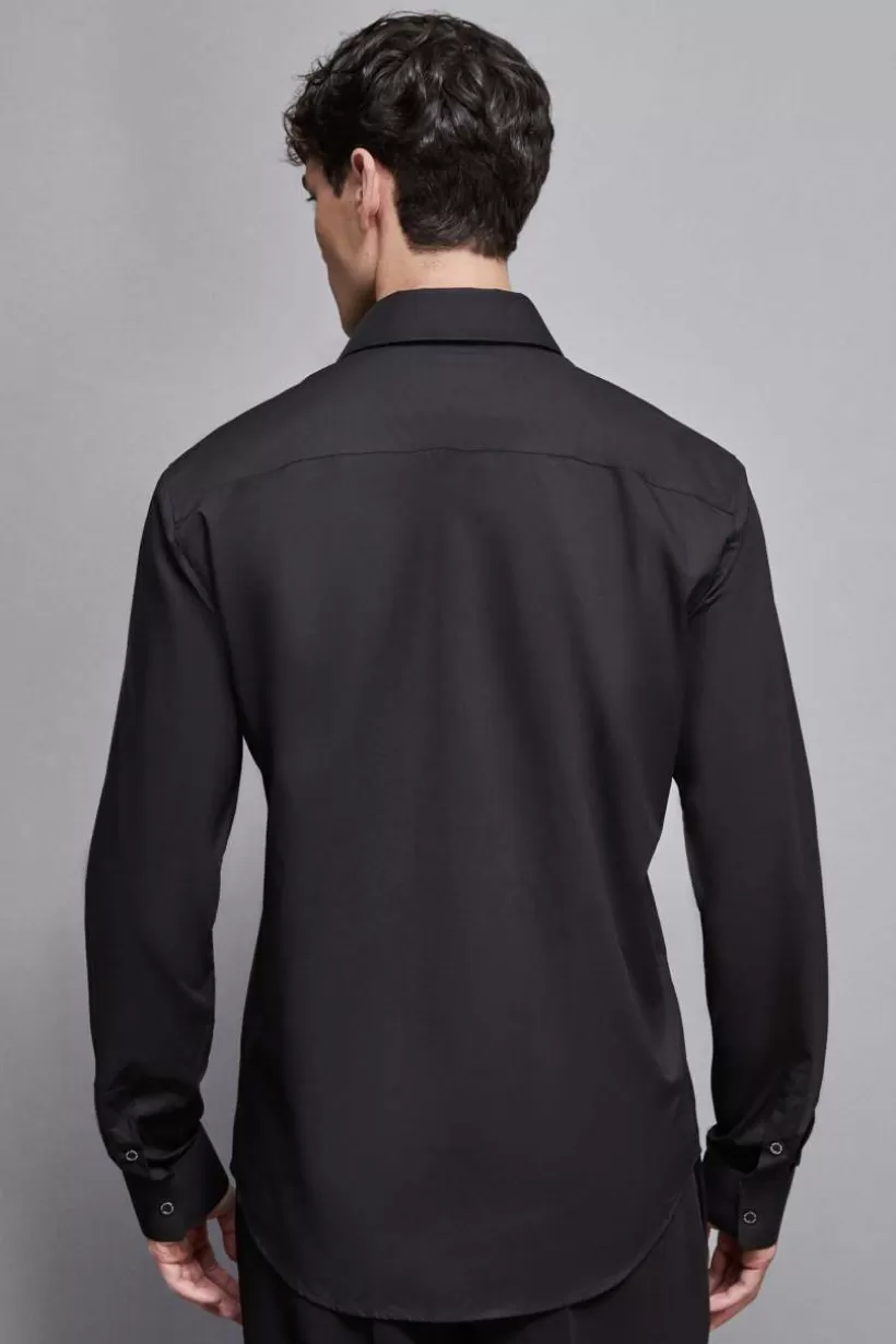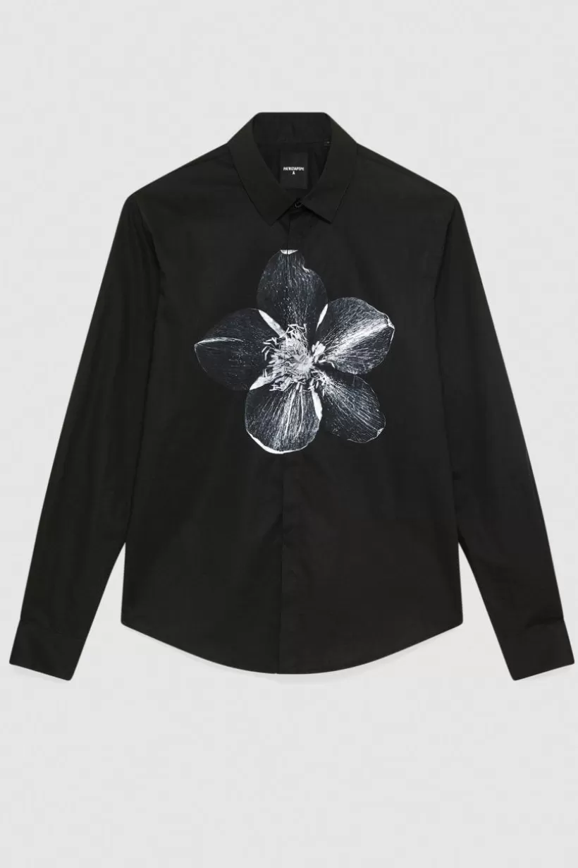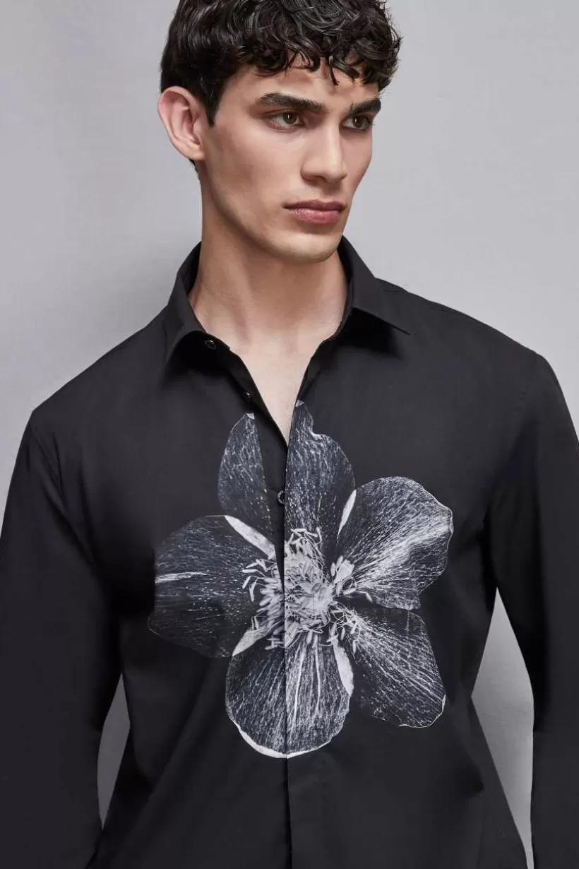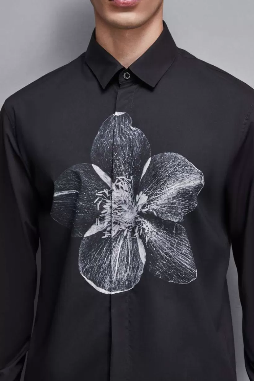 Niezbędna i nowoczesna koszula z kontrastowym nadrukiem z przodu, wykonana z mocnej bawełny. Charakteryzuje się prostym krojem i ukrytym zapięciem na guziki.