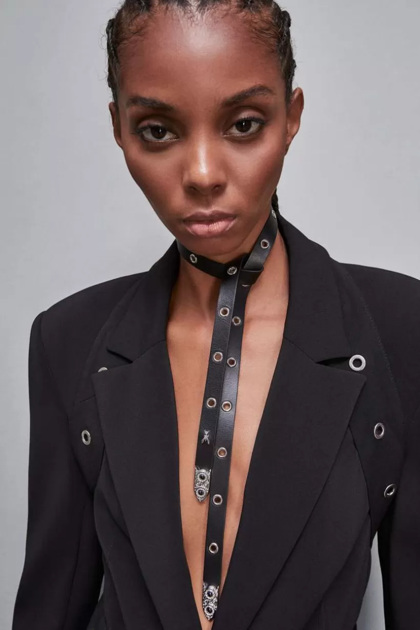 Chocker od marki Patrizia Pepe z metalowymi aplikacjami i metalowymi końcówkami. Nadaj swoim stylizacjom westernowy charakter.