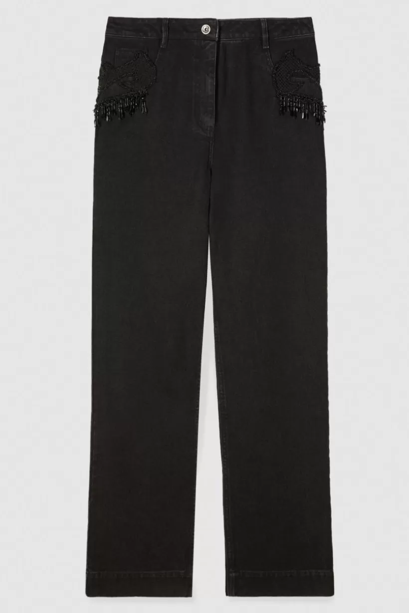 Jeansy z biżuteryjną wstawką oraz haftem na biodrach z cekinami i koralikami staną się Twoim nowym wyrazistym eleme…