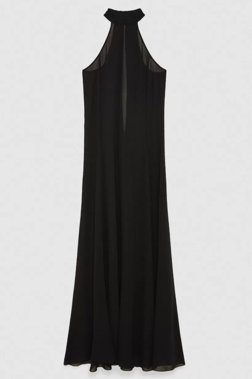 Długa sukienka z żorżety z wysokim kołnierzem^Patrizia Pepe Online