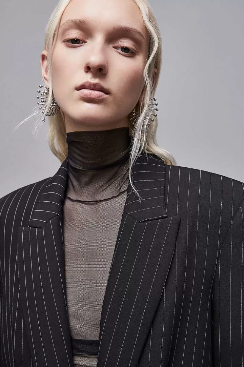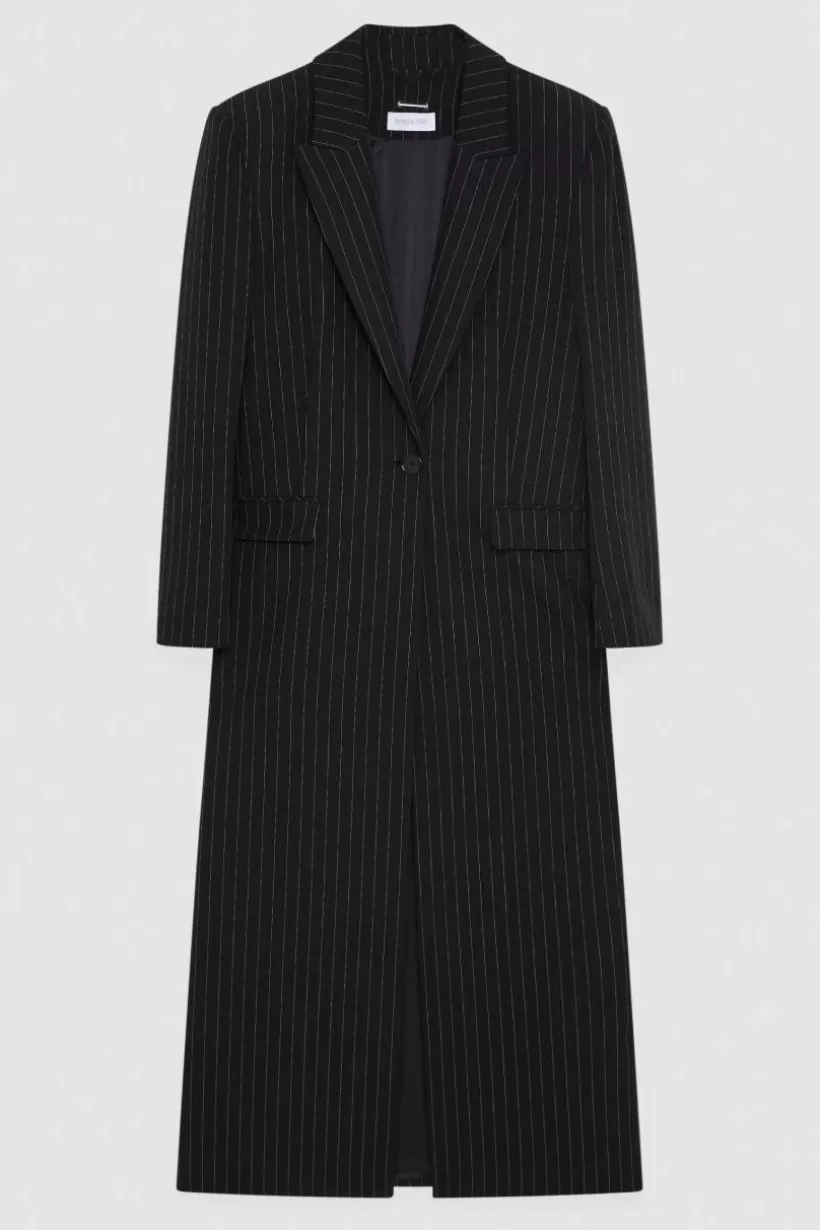 Długi płaszcz z miękkiej flaneli w prążki o męskim kroju i rozcięciami po bokach. Wygodny w noszeniu stylowy płaszcz, który nie pozwoli Ci pozostać w cieniu.