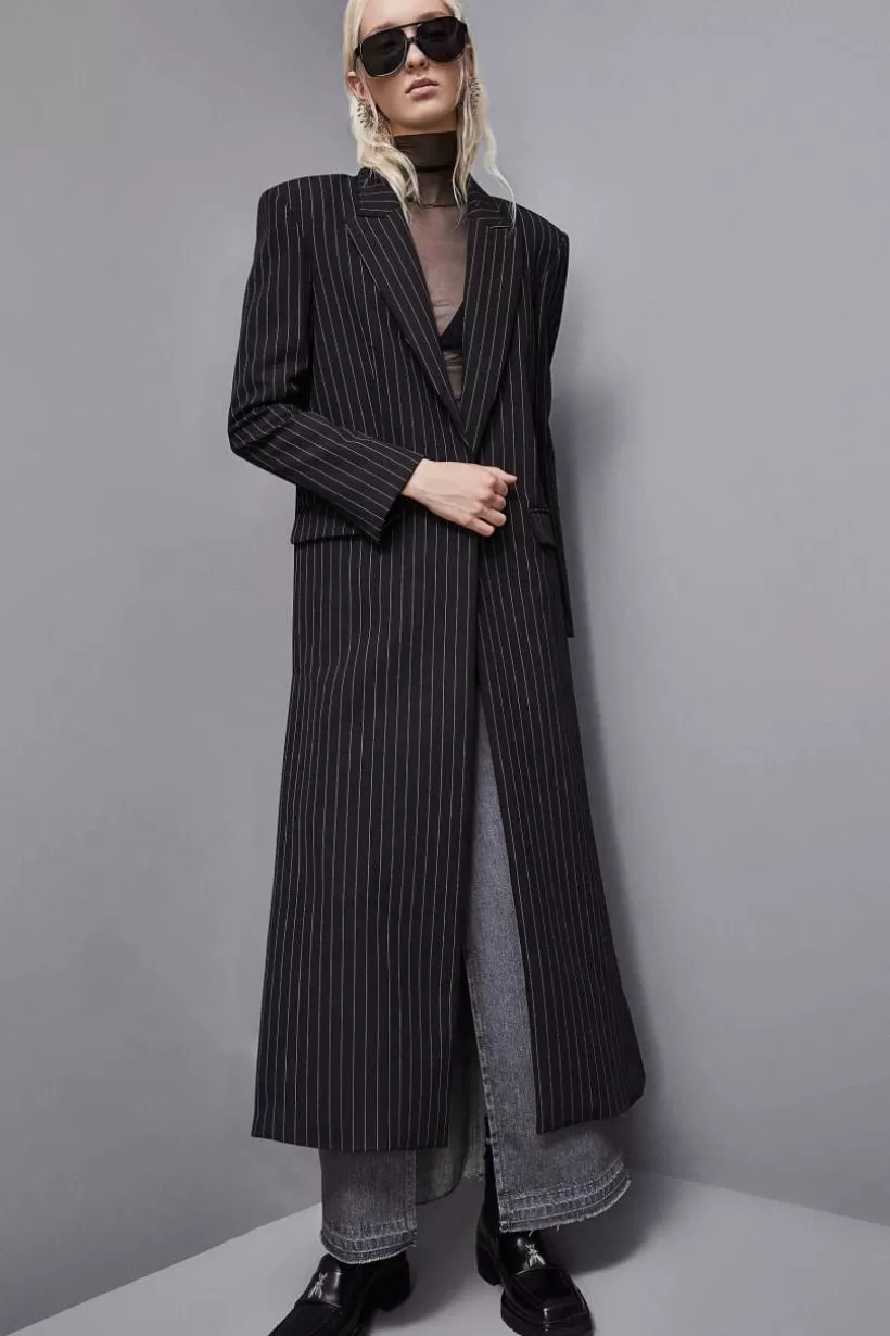 Długi flanelowy płaszcz w prążki^Patrizia Pepe Cheap