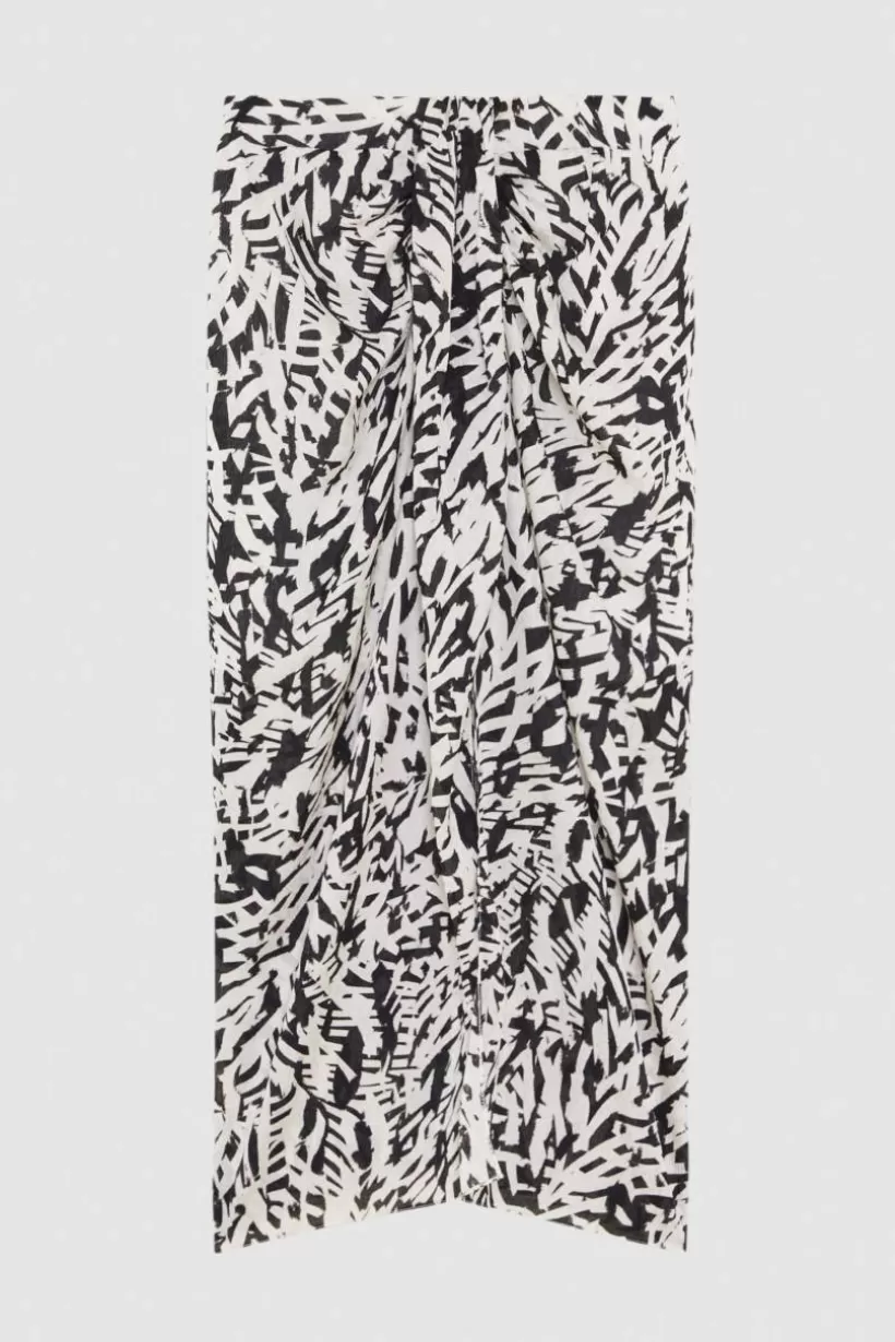 Elegancka spódnica midi z żorżety od marki Patrizia Pepe z eleganckim drapowaniem z przodu. Dwukolorowy wzór tkaniny…
