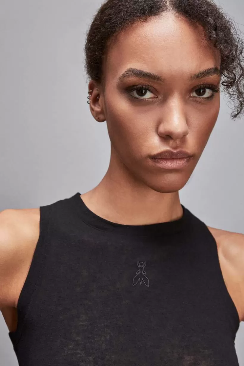 Praktyczny element garderoby od marki Patrizia Pepe, który musisz mieć. Dżersejowy tank top o kroju slim fit i z okrągłym dekoltem. Z haftem Fly na środku z przodu.