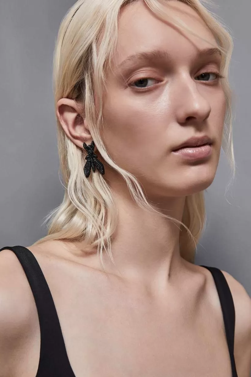 Kultowy symbol fly marki Patrizia Pepe w połączeniu z kryształkami pavé ożywia kolczyki z mosiądzu i szkła. Załóż je, aby nadać swojej stylizacji elegancki akcent pełen światła.