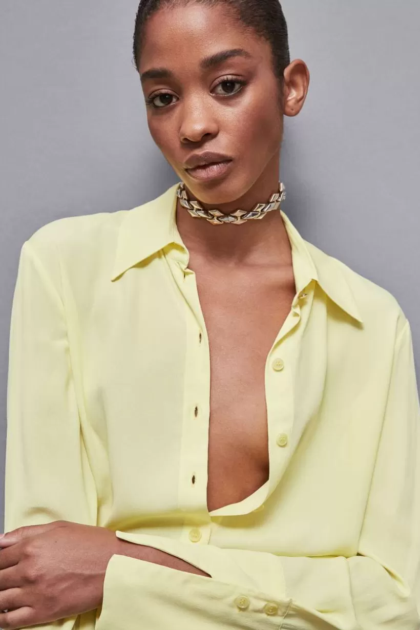 Koszula Essential z krepy z długim rękawem i karczkiem o męskim kroju. Zapinana na guziki fly, detal, który wyróżnia markę Patrizia Pepe. Wykorzystaj ją w codziennych stylizacjach, aby zawsze czuć się idealnie.
