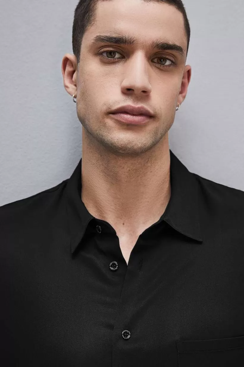 Tym, co wyróżnia koszulę z krótkim rękawem od marki Patrizia Pepe to jej luźny fason. Wykonana z wiskozowego diagonalu, z naszywaną kieszenią po lewej stronie oraz z guzikami z masy perłowej z logo.