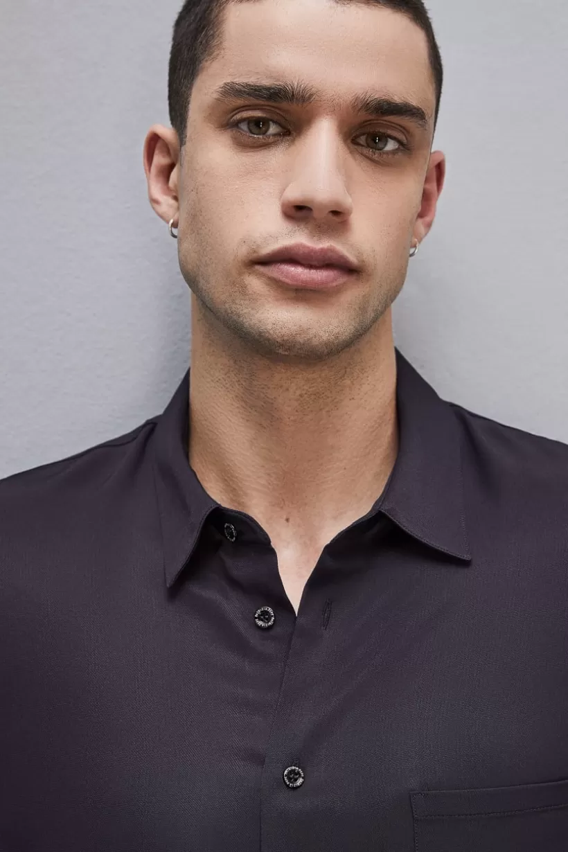 Tym, co wyróżnia koszulę z krótkim rękawem od marki Patrizia Pepe to jej luźny fason. Wykonana z wiskozowego diagonalu, z naszywaną kieszenią po lewej stronie oraz z guzikami z masy perłowej z logo.