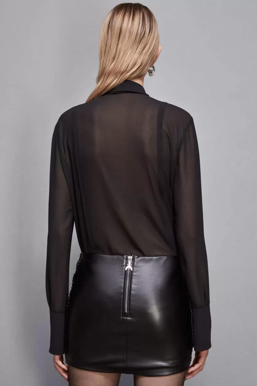 Koszula, podstawowy element garderoby, powraca w doskonałym stylu marki Patrizia Pepe. Model z żorżety posiada tiulowy haft z motywem kowbojki.