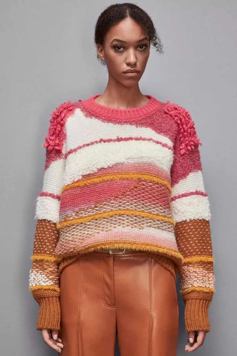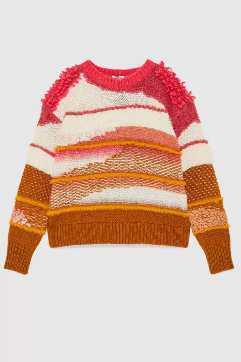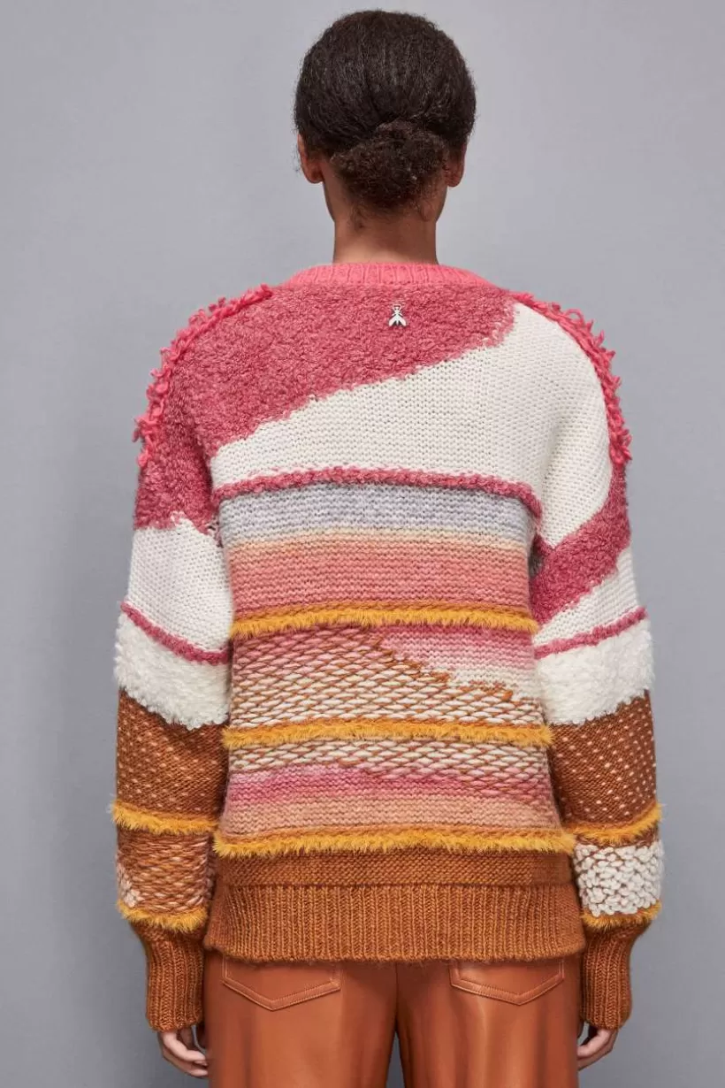 Dodaj odrobinę ironii do swoich stylizacji dzięki tej bluzce z okrągłym dekoltem. Dzianina z mieszanką ściegów dziewiarskich, które nadają swetrowi miękkości.