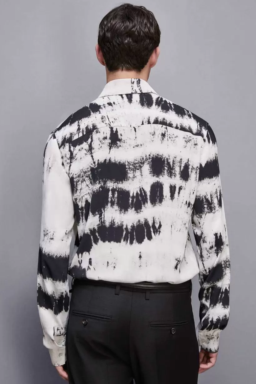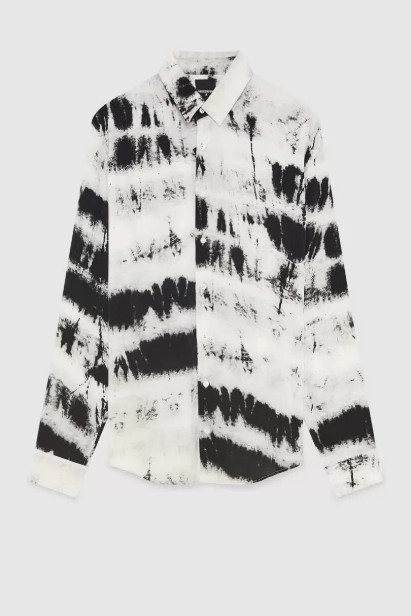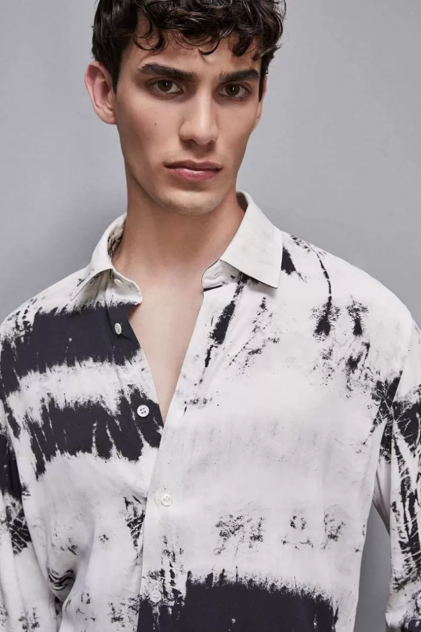 Koszula z wiskozowego diagonalu o luźnym fasonie i lekko obniżonych ramionach marki Patrizia Pepe. Tym, co wyróżnia tę koszulę to wzorzysta tkanina oraz guziki z masy perłowej z logo.