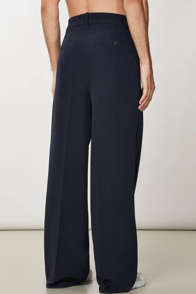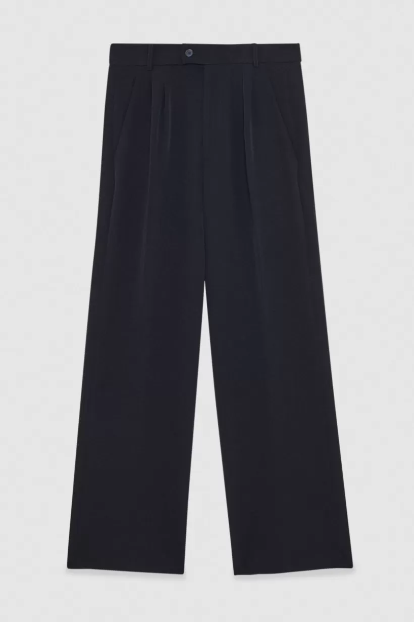 Luźne spodnie o klasycznym kroju z lejącej polikrepy, z zaszewkami i zapięciem na guzik i zamek błyskawiczny. Wyrafinowany i elegancki model z ukośnymi wpuszczanymi kieszeniami i ze wpuszczanymi kieszeniami z tyłu.