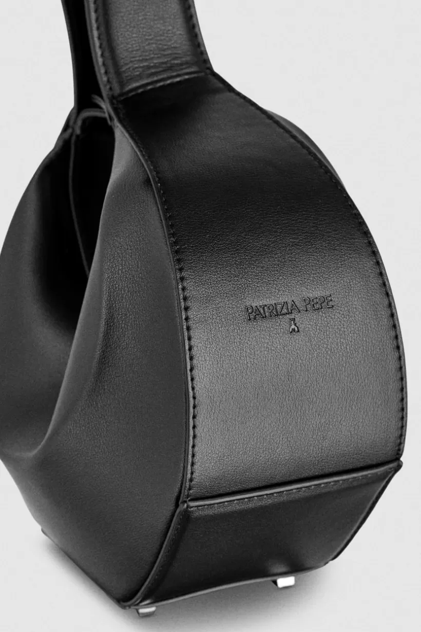 Zagięte i asymetryczne linie tworzą minimalistyczny, ale niezwykle elegancki dodatek. Torebka z wyrafinowanej gładkiej skóry jest ozdobiona wytłoczonym na złoto logo marki Patrizia Pepe i ma praktyczne zapięcie na zatrzask.
