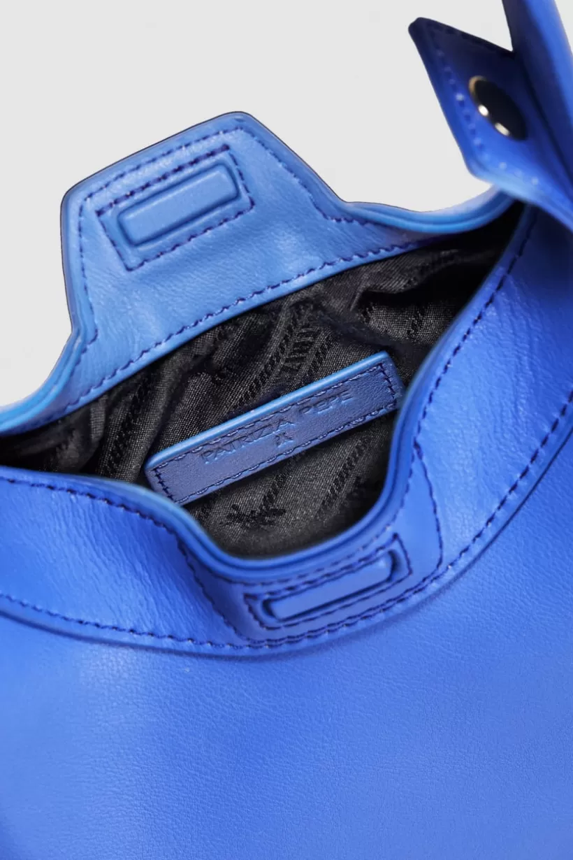 Zagięte i asymetryczne linie tworzą minimalistyczny, ale niezwykle elegancki dodatek. Torebka z wyrafinowanej gładkiej skóry jest ozdobiona wytłoczonym na złoto logo marki Patrizia Pepe i ma praktyczne zapięcie na zatrzask.