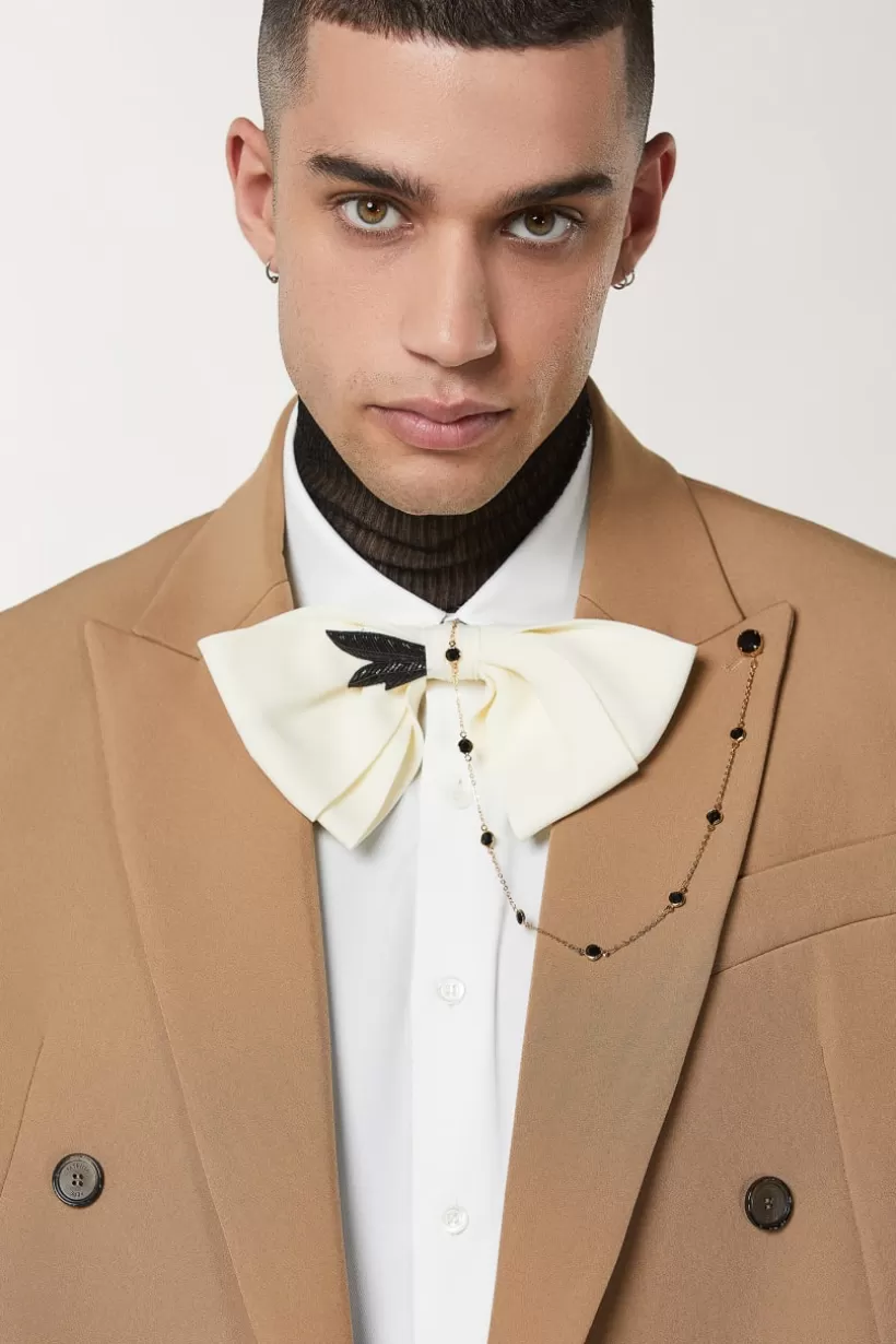 Dwurzędowa marynarka o klasycznym kroju z polikrepy marki Patrizia Pepe z klapami w szpic i przywieszką Fly. Model pos…