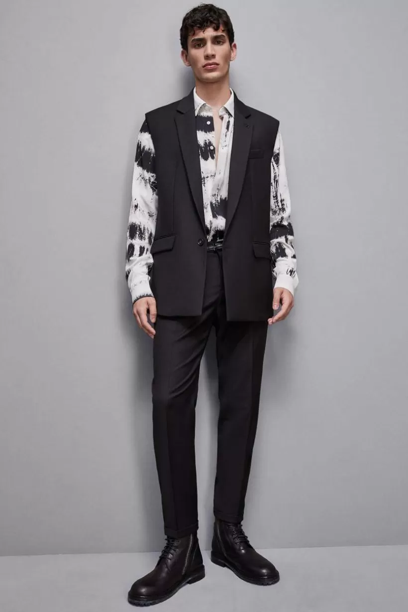Elegancka kamizelka z domieszką wełny doda klasy Twoim stylizacjom. Posiada ozdobne klapy z detalem Fly oraz kieszenie ze ściągaczem i kieszonkę z przodu.