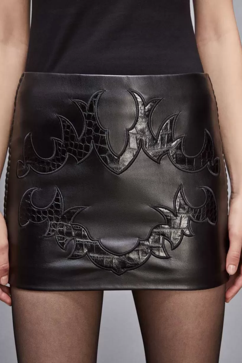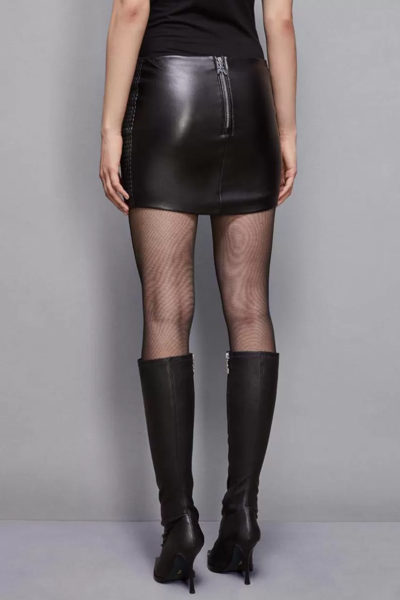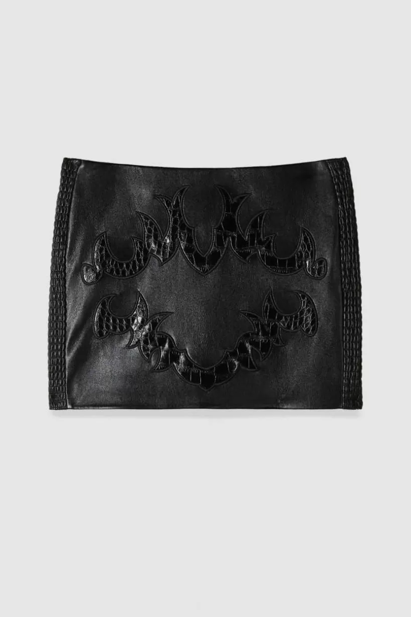 Dodaj swojej stylizacji odrobiny zadziornej kobiecości dzięki tej minispódniczce z powlekanej tkaniny. Niska talia i patchworkowy haft podkreślają styl glam sukienki.