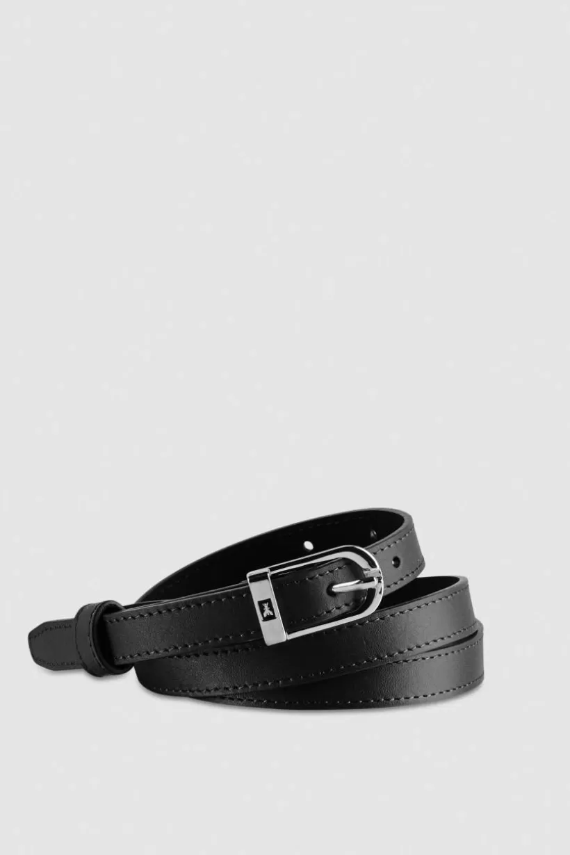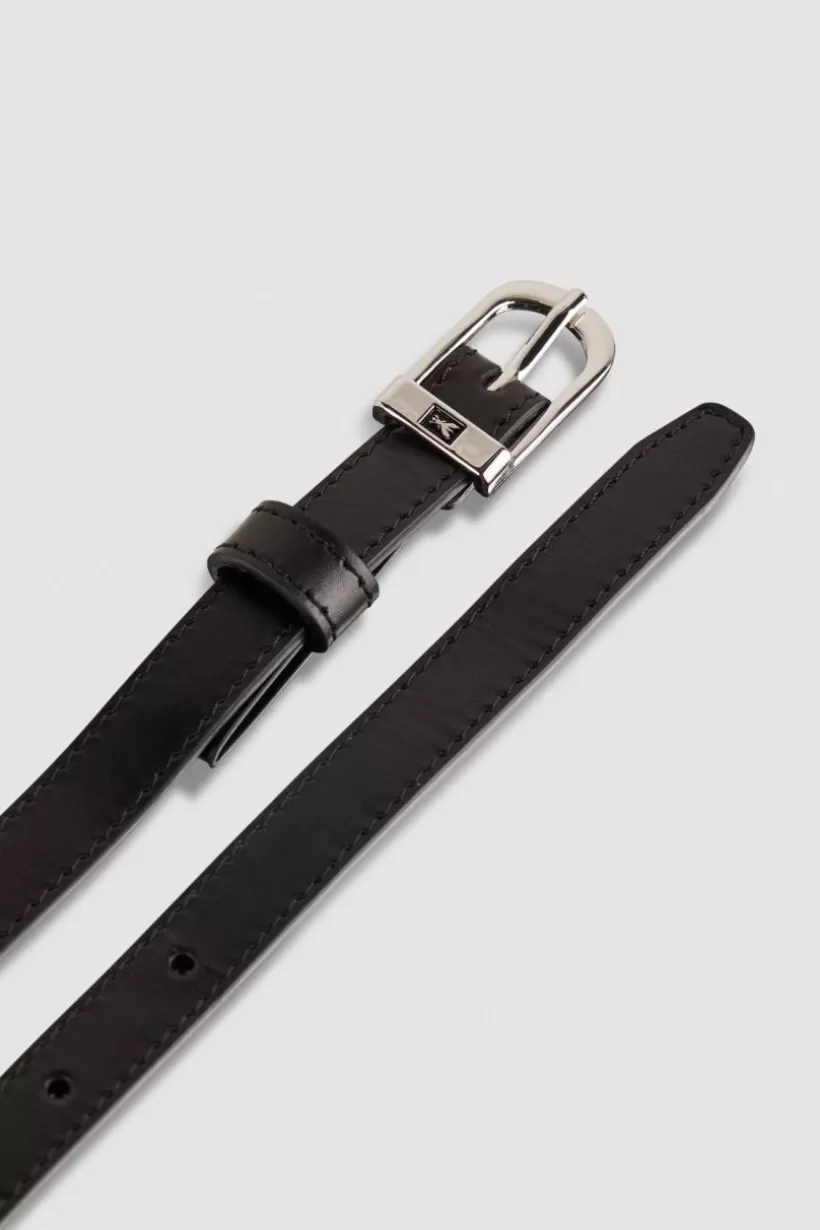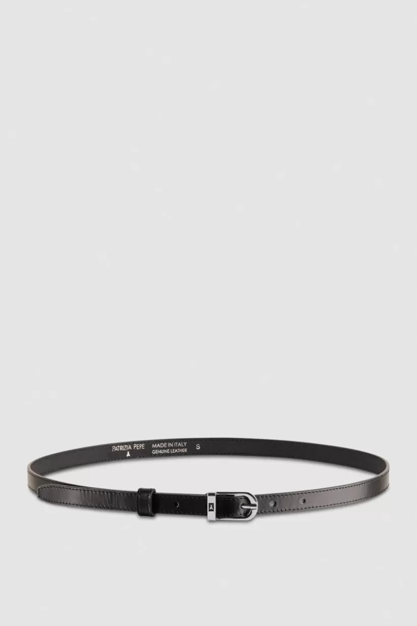 Minimalistyczny skórzany pasek z niskim stanem marki Patrizia Pepe i klamrą z mini logo. Idealnie podkreśli Twoją talię i dopełni każdą stylizację.