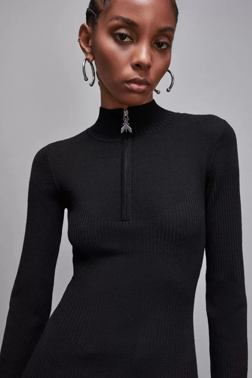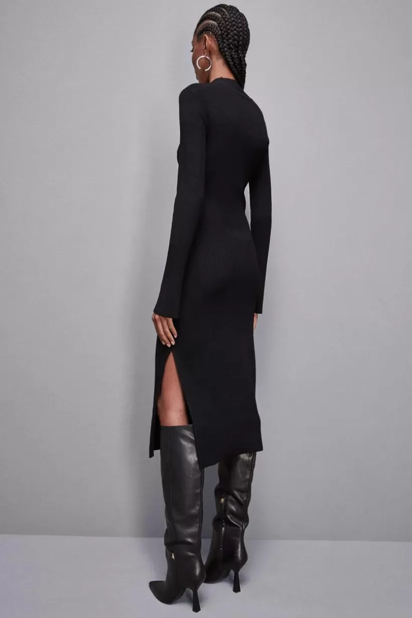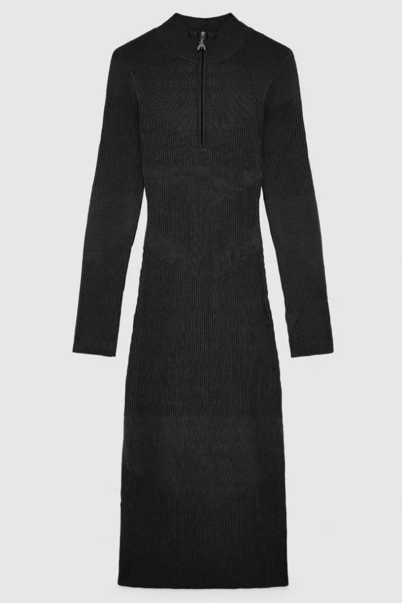 Spraw, aby Twoje stylizacji były pełne klasy dzięki tej uniwersalnej i wyrafinowanej sukience. Wełniana, prążkowana sukienka midi z wysokim kołnierzem, zamkiem błyskawicznym i detalem Fly.