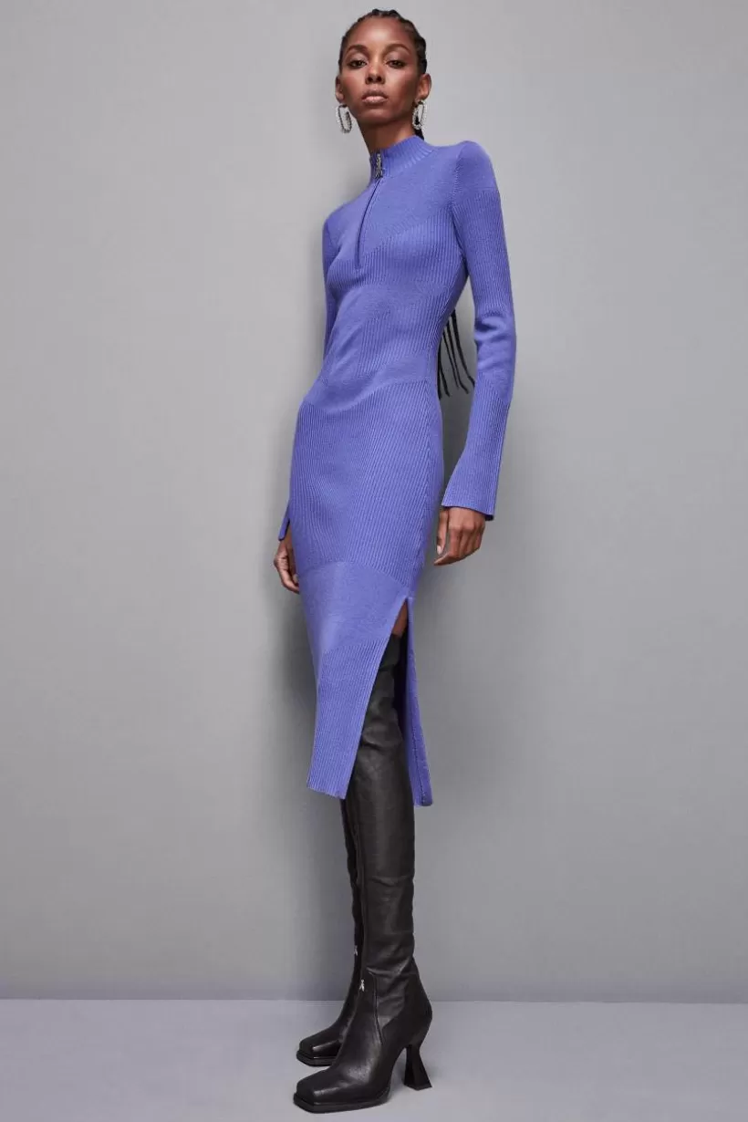 Spraw, aby Twoje stylizacji były pełne klasy dzięki tej uniwersalnej i wyrafinowanej sukience. Wełniana, prążkowana sukienka midi z wysokim kołnierzem, zamkiem błyskawicznym i detalem Fly.