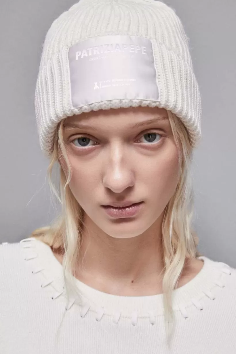 Nieustannie modna, prążkowana czapka wykonana z mieszanki wełny z metką Patrizia Pepe w tym samym odcieniu. Ciepły i miękki wygodny dodatek, który będzie Ci towarzyszyć w najzimniejsze dni.