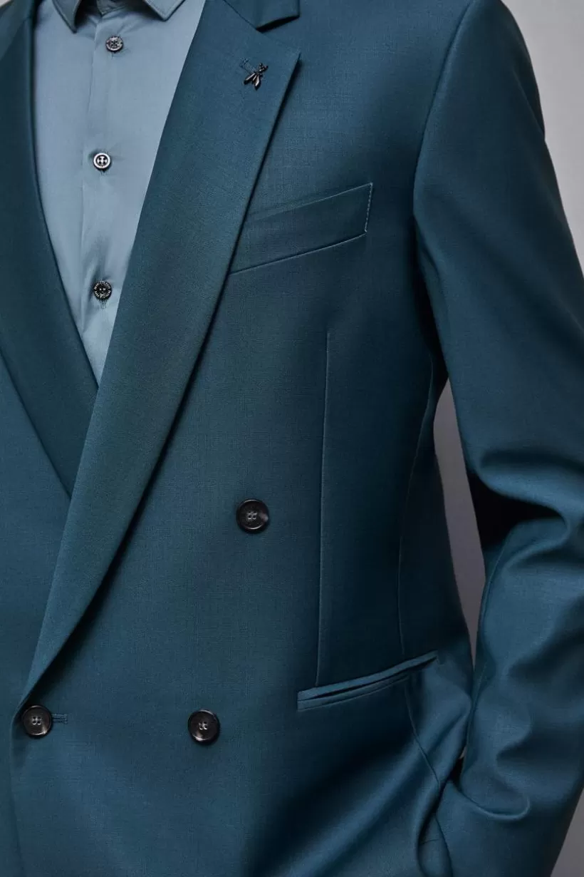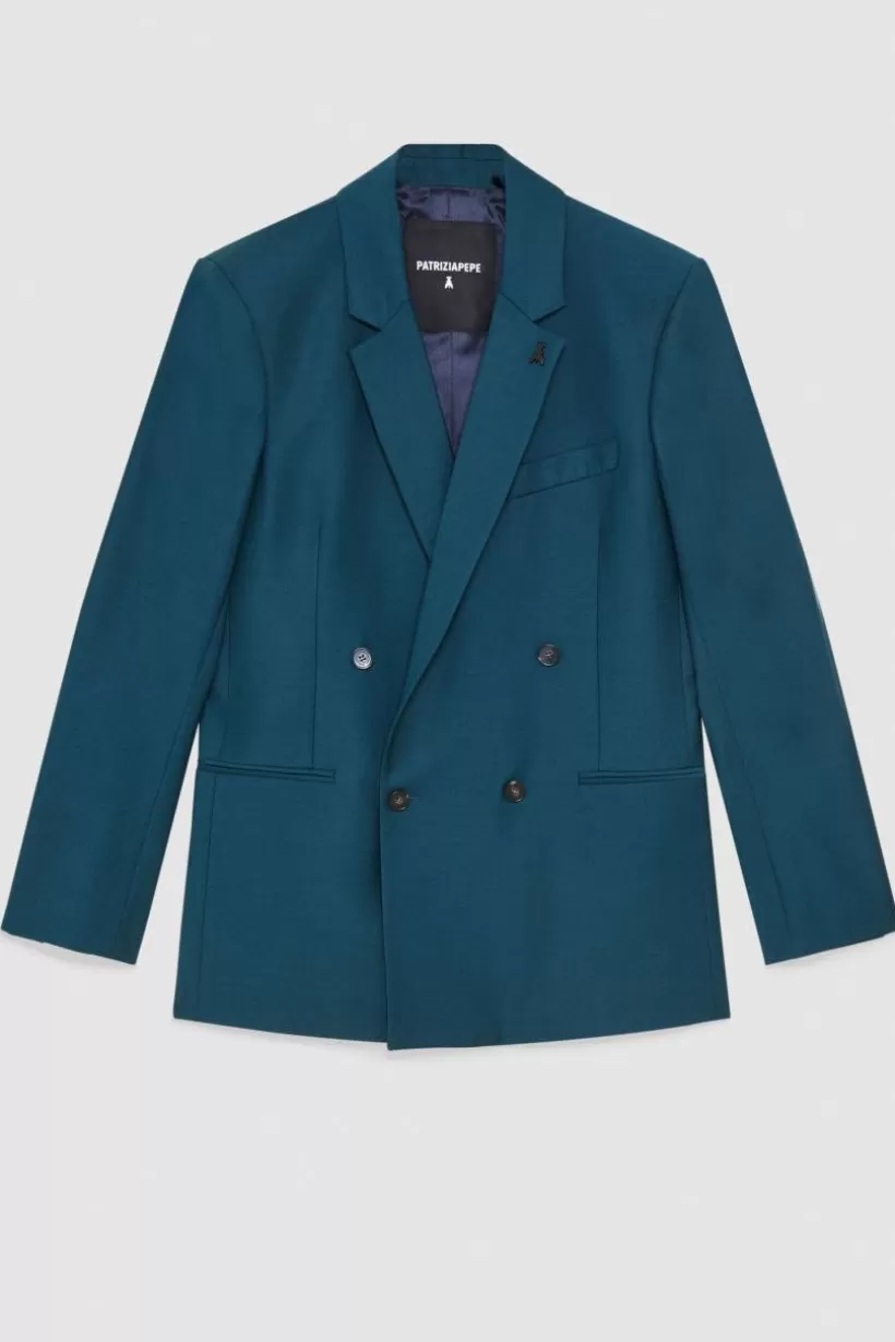 Dwurzędowa prosta marynarka z podszewką z wygodnej tkaniny z letniej wełny. Element garderoby, dzięki któremu wyróżnisz się dzięki doskonałemu stylowi marki Patrizia Pepe. Przypinka Fly na klapie.