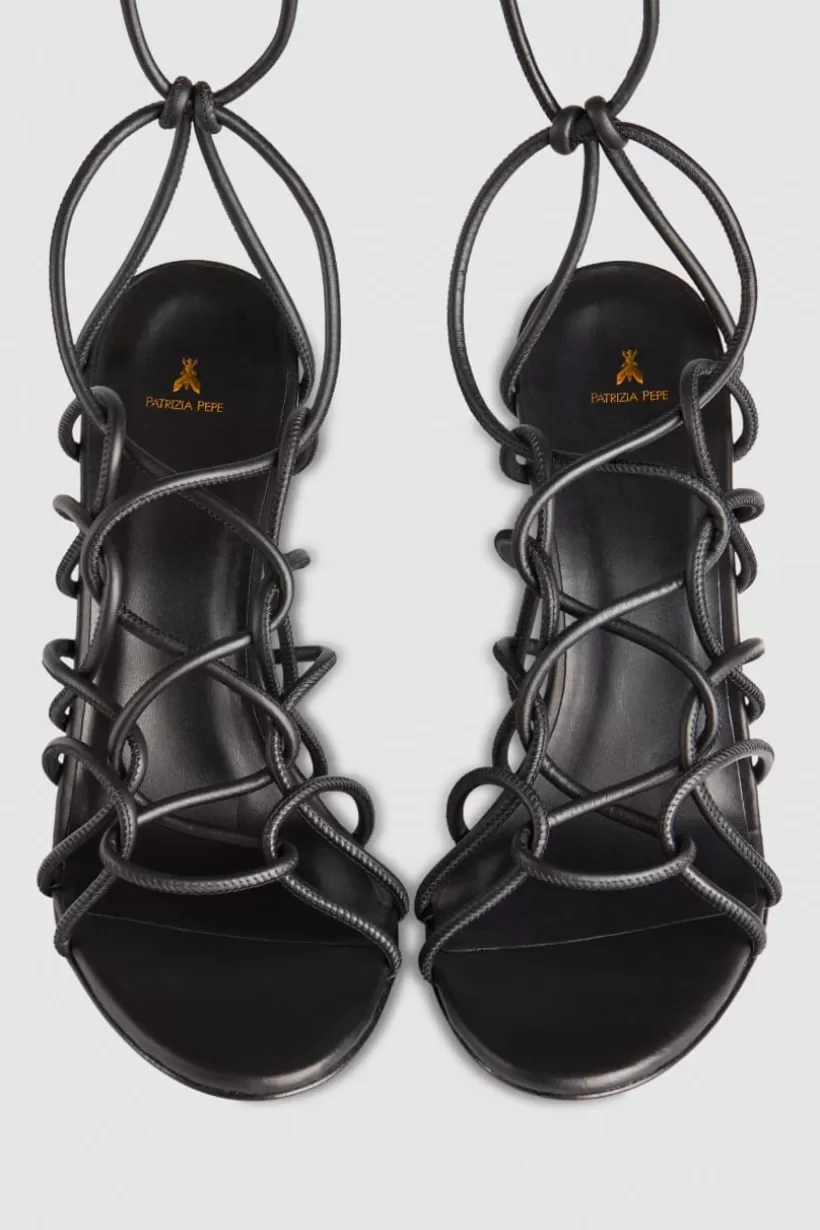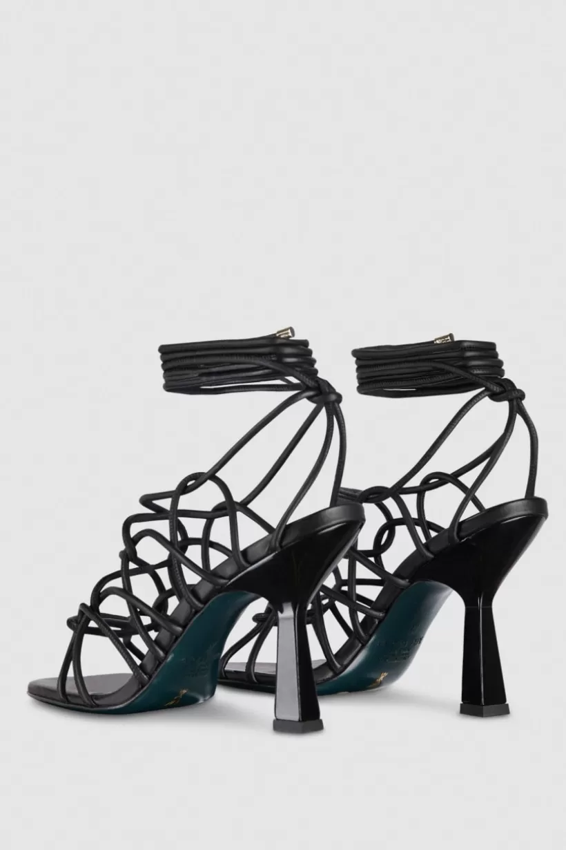 Misterne łączenia splotów otulają stopy i kostki zmysłowością. Skórzane sandały, które staną się bohaterami Twoich najmodniejszych stylizacji. Subtelny i wyrzeźbiony obcas o wysokości 10 cm dodaje sylwetce dynamizmu.