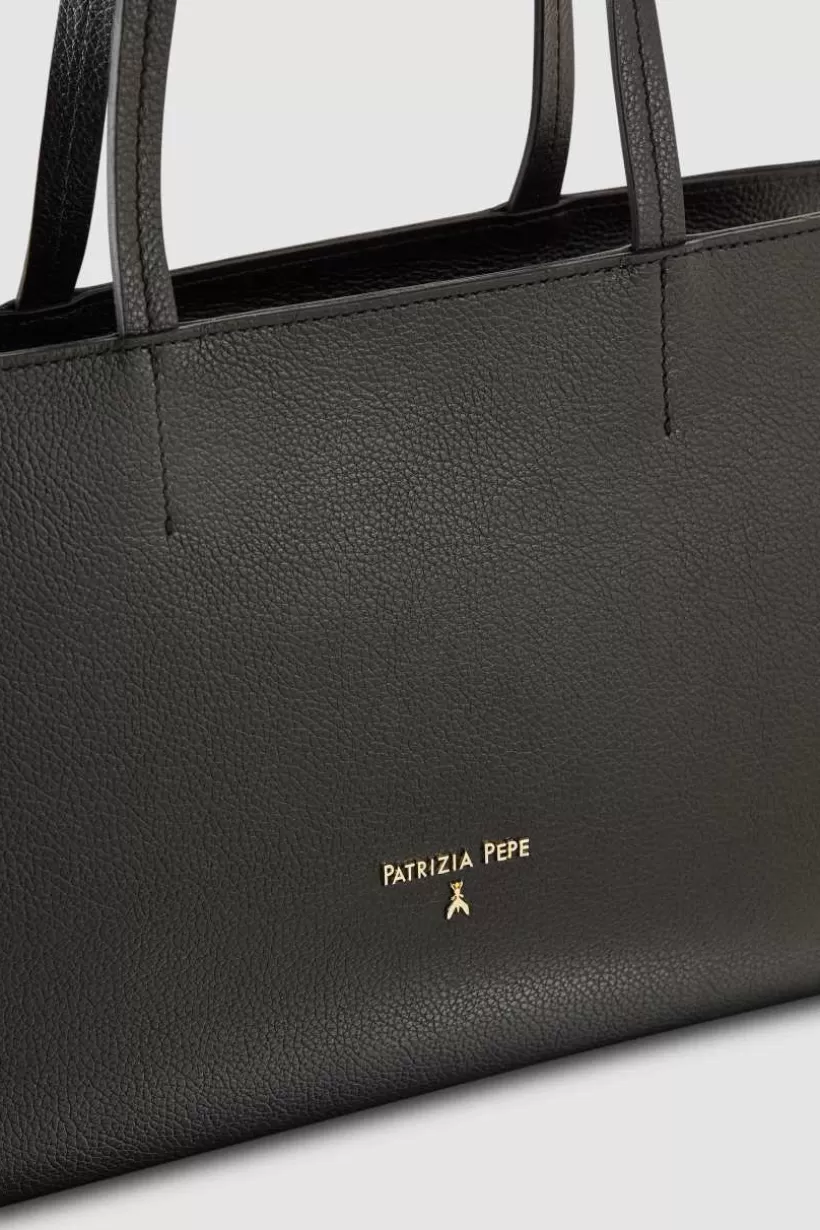 Skórzana torba na zakupy z zamkiem błyskawicznym^Patrizia Pepe Outlet