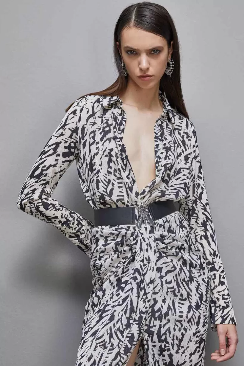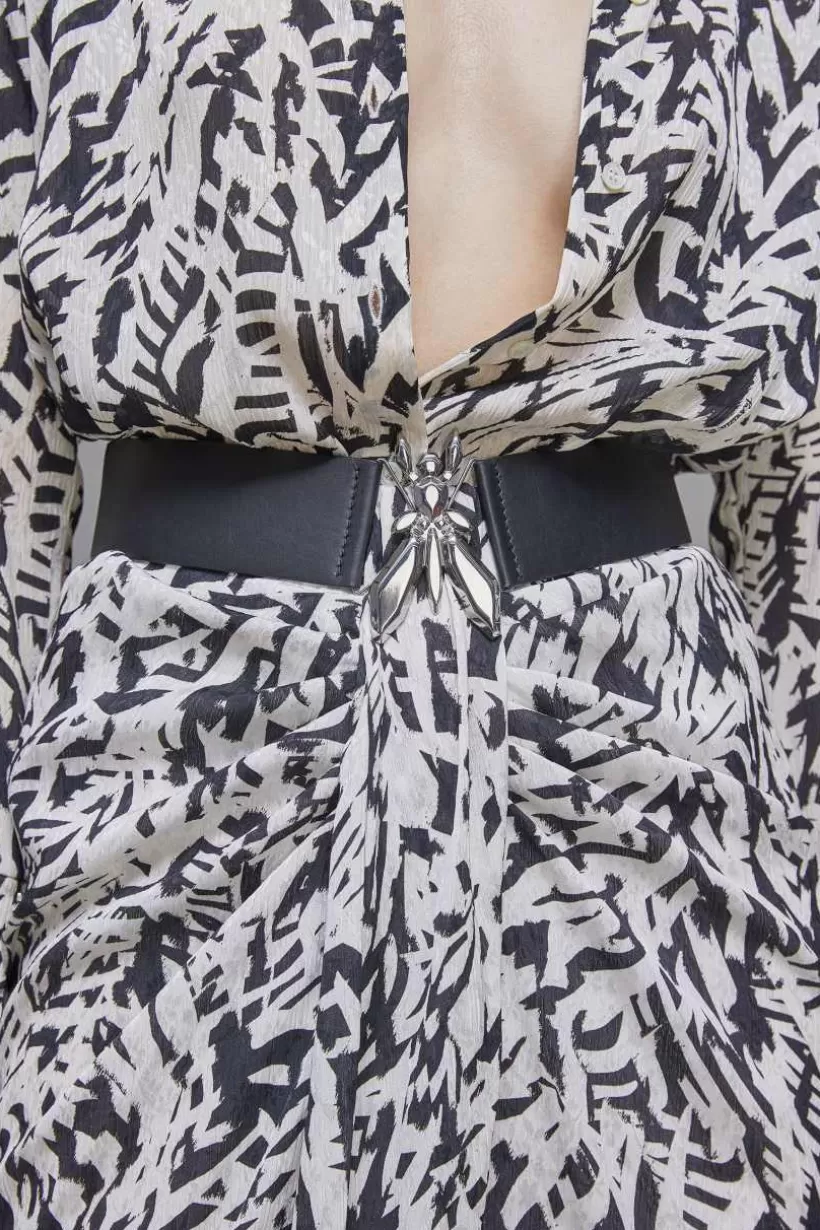 Skórzany pasek z wysokim stanem i gumką z tyłu zapewnia wygodę noszenia przez cały dzień. Dodaj go do swojej ulubionej stylizacji, aby dodać charakterystyczny akcent marki Patrizia Pepe.