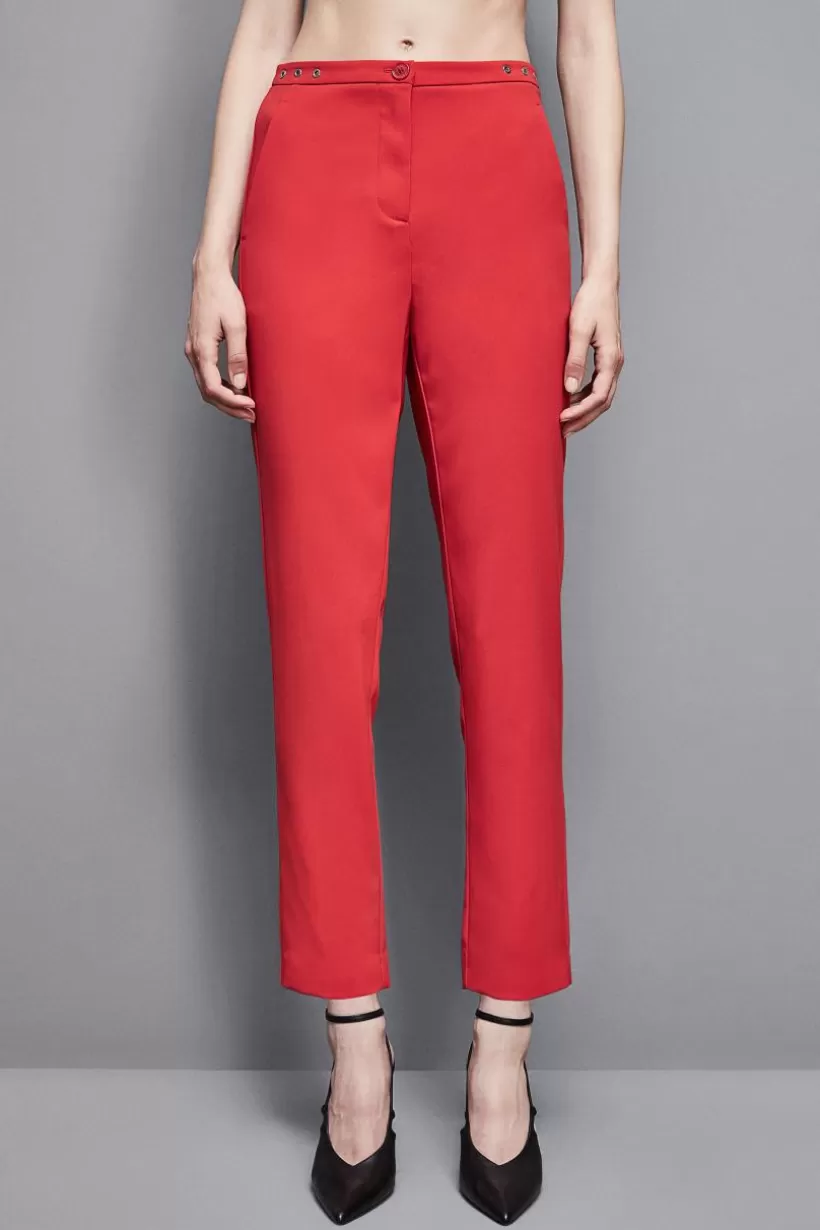Spodnie cygaretki Essential o minimalistycznym kroju od Patrizia Pepe to prawdziwy evergreen. Nity zdobią pasek, zapewniając energetyczną i modną stylizację, idealną na co dzień.