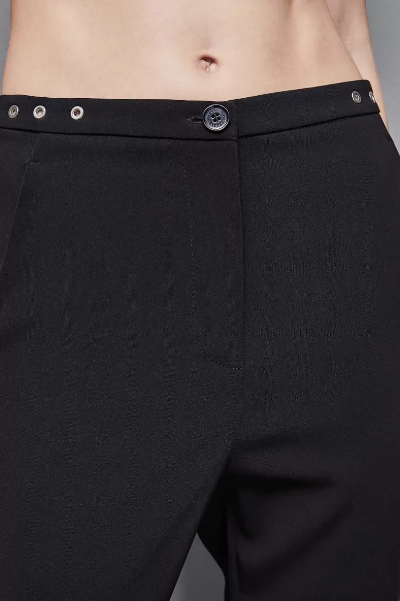Spodnie cygaretki Essential o minimalistycznym kroju od Patrizia Pepe to prawdziwy evergreen. Nity zdobią pasek, zapewniając energetyczną i modną stylizację, idealną na co dzień.
