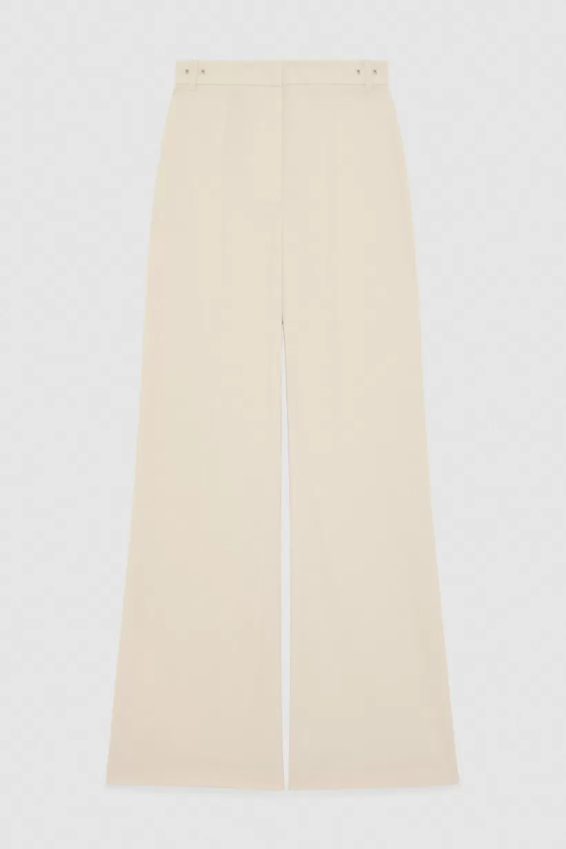 Minimalistyczna elegancja spodni palazzo Essential marki Patrizia Pepe. Wykonane z lekko rozciągliwej krepy z nitami na pasku. Połącz je z butami na wysokim obcasie, aby wyszczuplić sylwetkę.