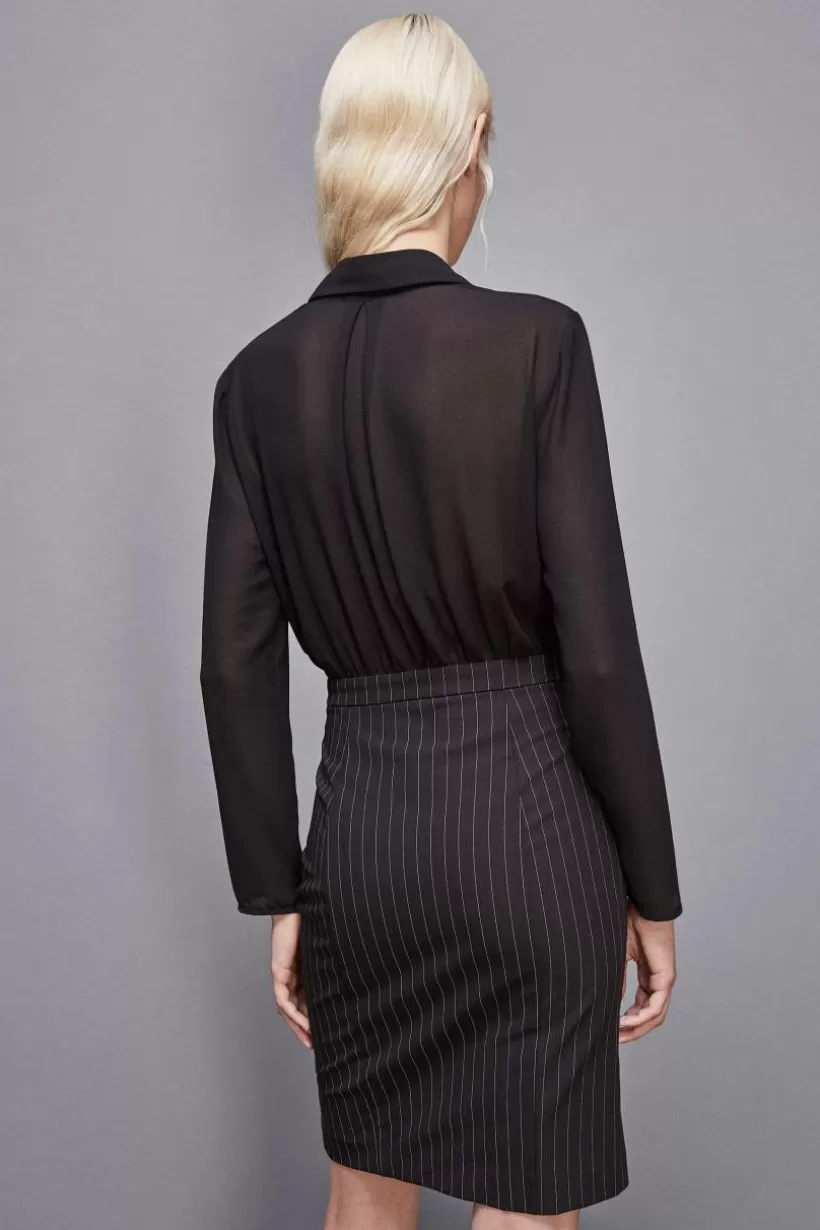 Mieszanka tkanin w sukience w prążki do kolan od marki Patrizia Pepe. Elegancka i wyrafinowana, to prawdziwy must-have, idealna do noszenia zarówno w biurze, jak i wtedy, gdy zależy Ci na doskonałym wyglądzie.