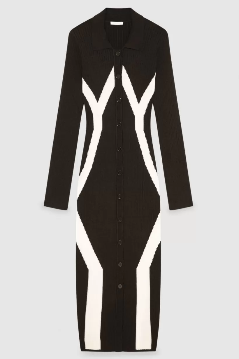 Ściągaczowa dzianina oraz krój slim są tym, co wyróżnia tę szmizjerkę midi z domieszką wiskozy od marki Patrizi…