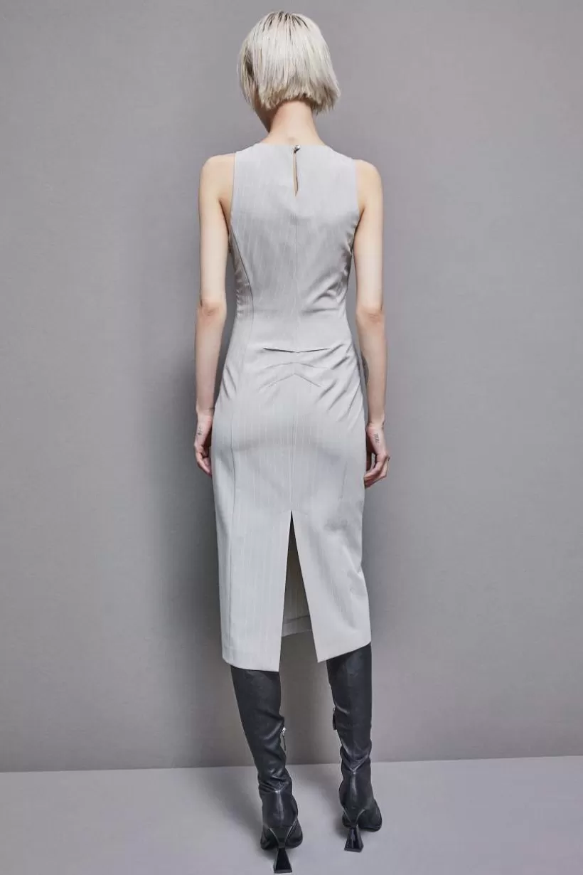 Sukienka midi w prążki z okrągłym dekoltem^Patrizia Pepe Best