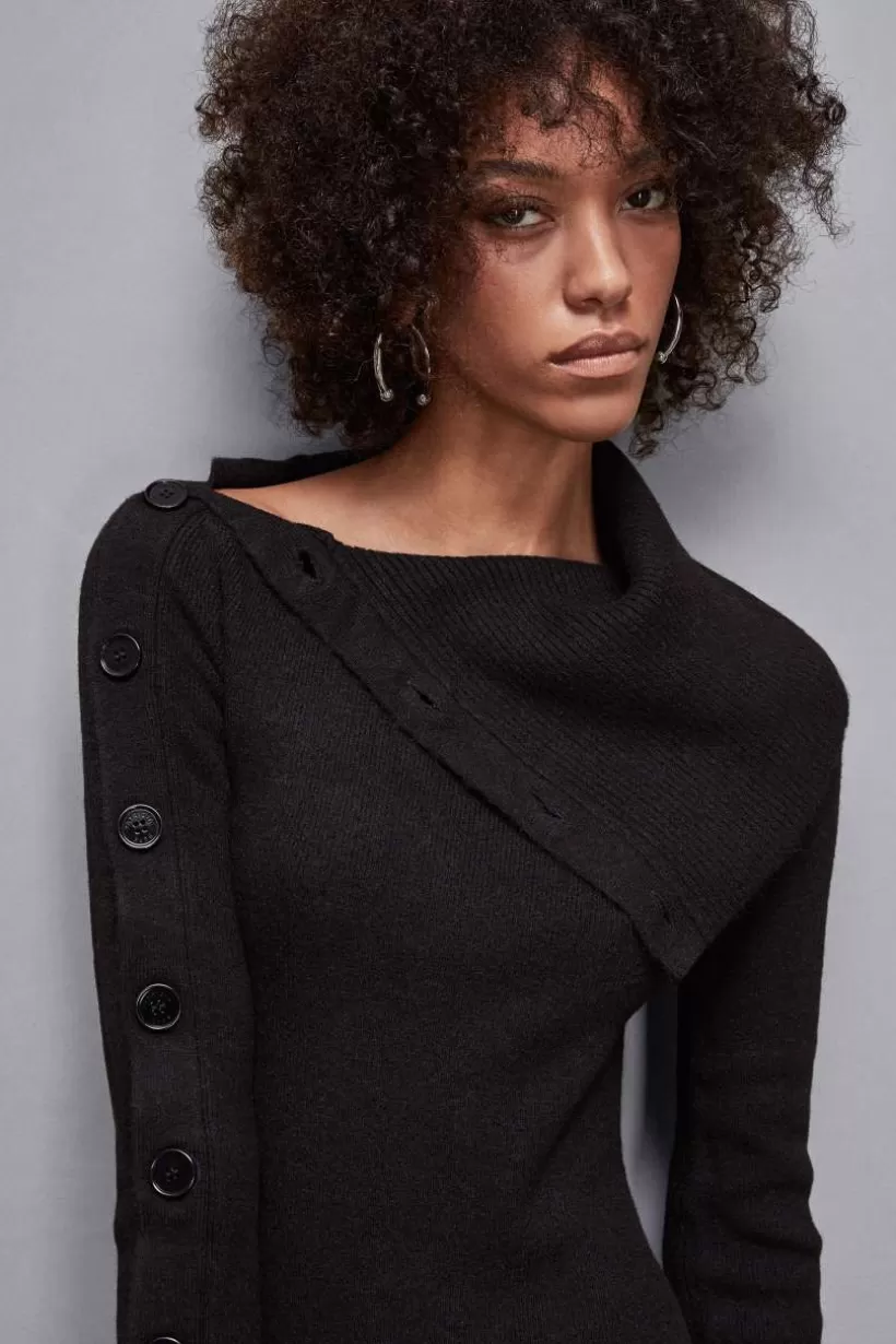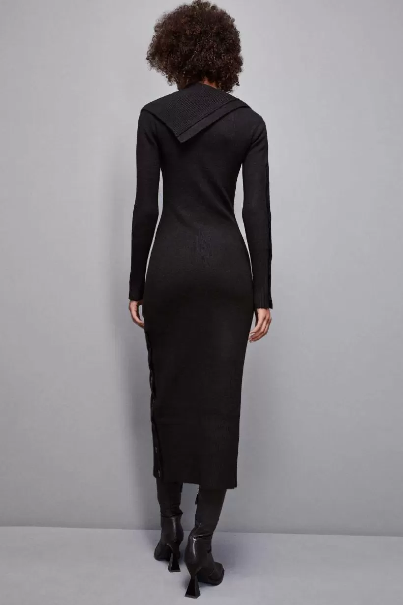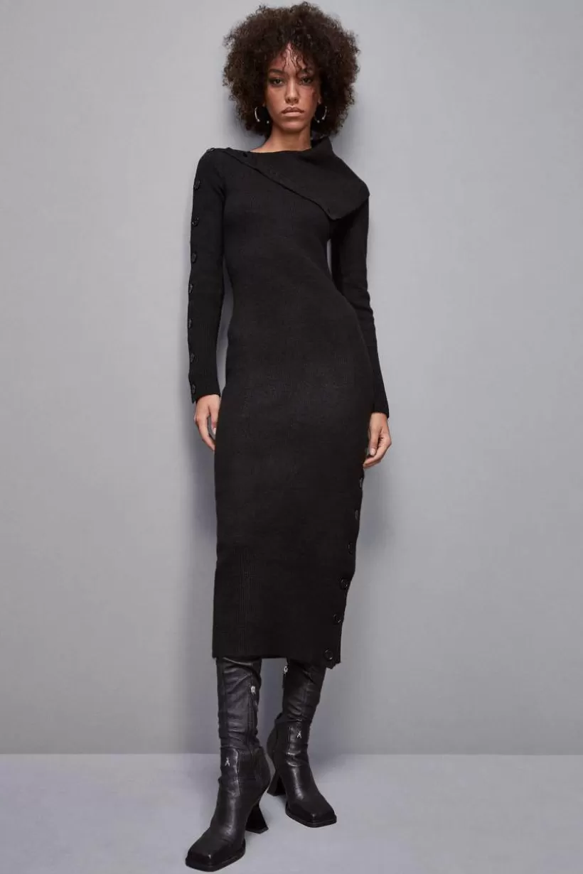 Dzianinowa sukienka midi nadanstylowego charakteru Twoim stylizacjom na różne okazje. Minimalistyczne linie, guziki z logo inwyhaftowany symbol Fly. Wyróżnia się maxi dekoltem z rozcięciem z boku.