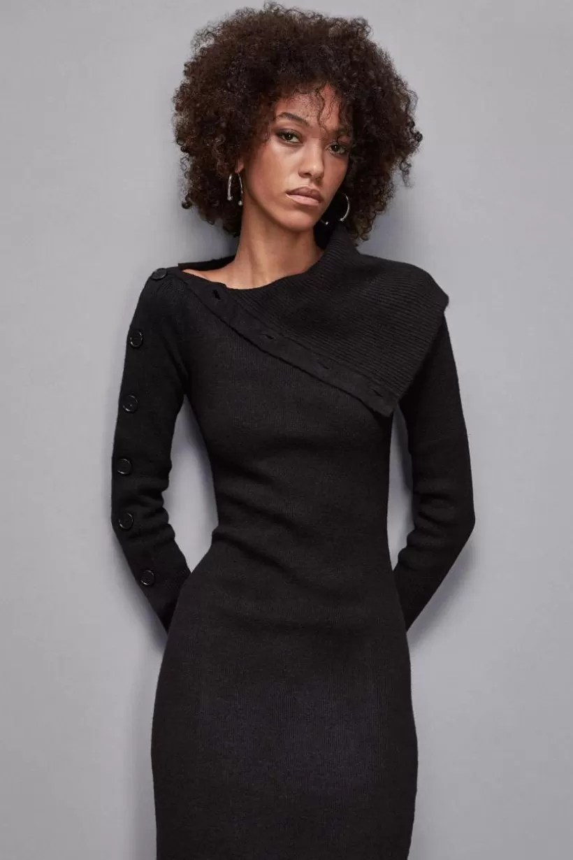Dzianinowa sukienka midi nadanstylowego charakteru Twoim stylizacjom na różne okazje. Minimalistyczne linie, guziki z…