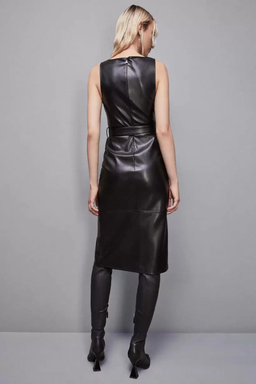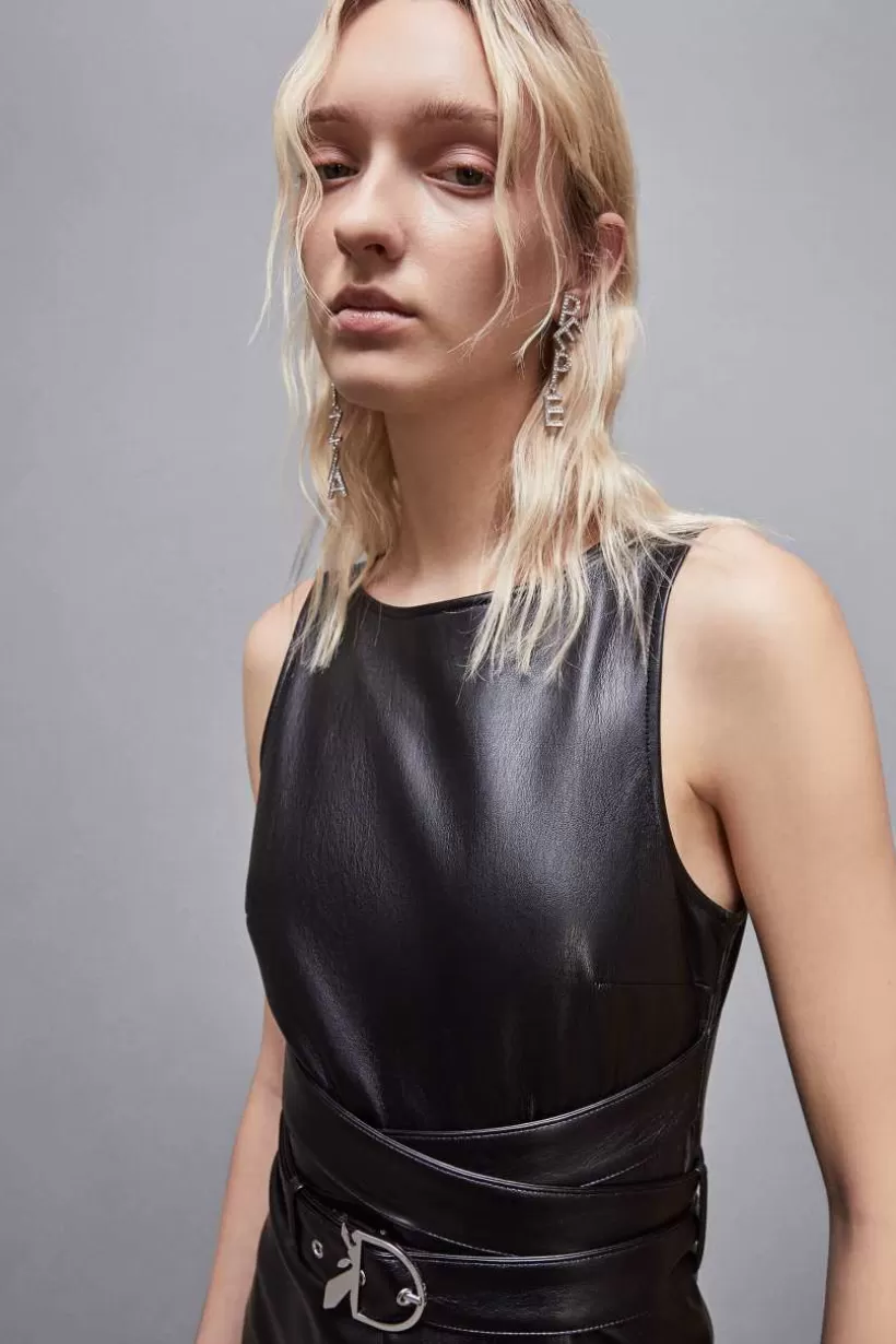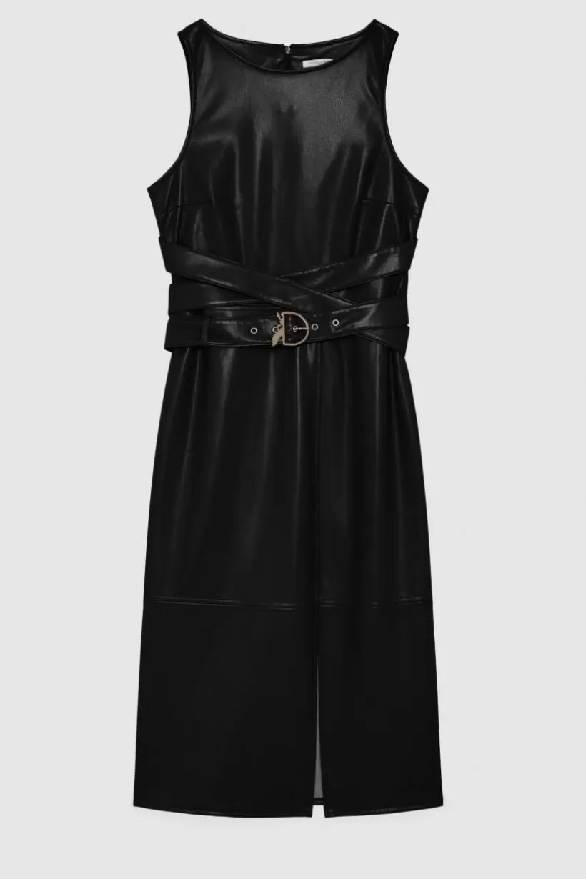 Statement piece, który odświeży Twoje stylizacje. Sukienka bez rękawów z powlekanej tkaniny zaskakuje paskiem, który tworzy oryginalny wzór krzyżowy oraz klamrą Fly.
