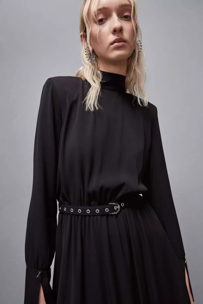 Wiskozowa sukienka do łydki z efektownymi elementami w stylu marki Patrizia Pepe: detalem Fly na mankietach i paskiem ze złotymi nitami, które nadają jej charakteru i blasku.