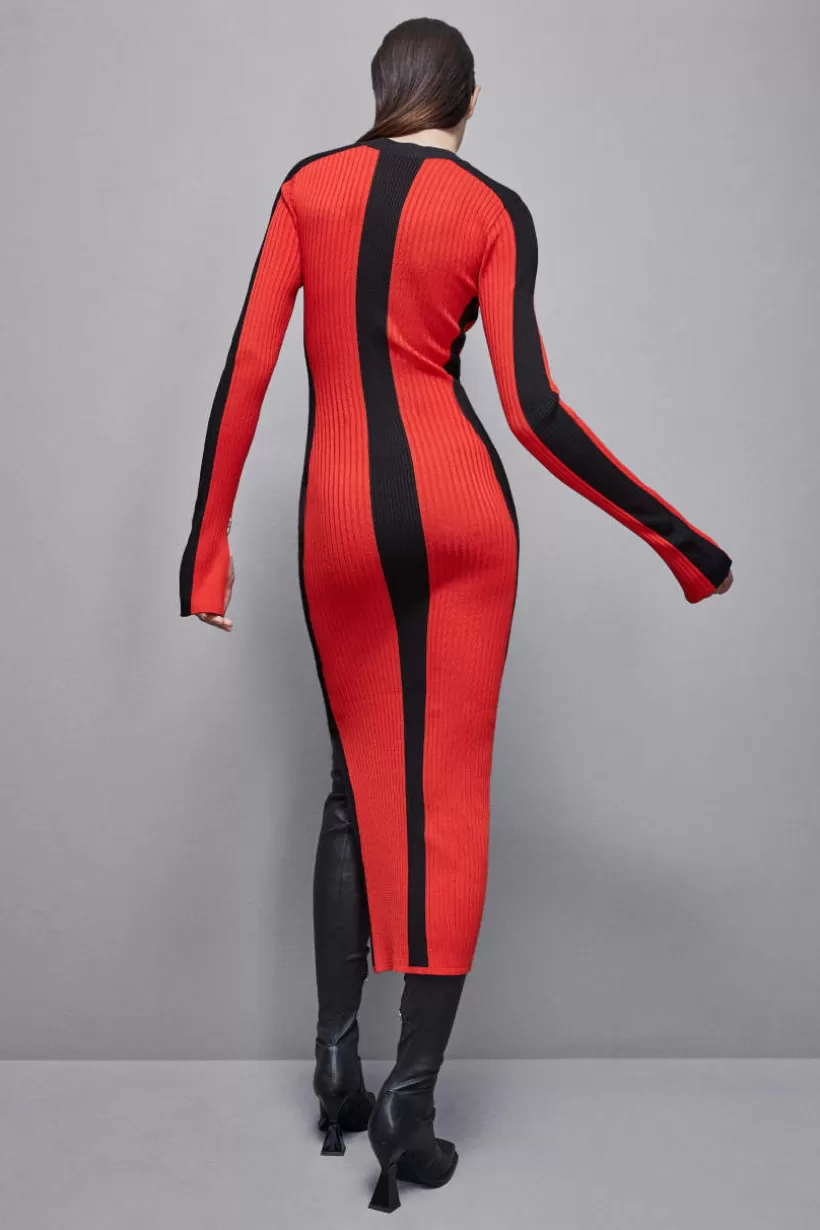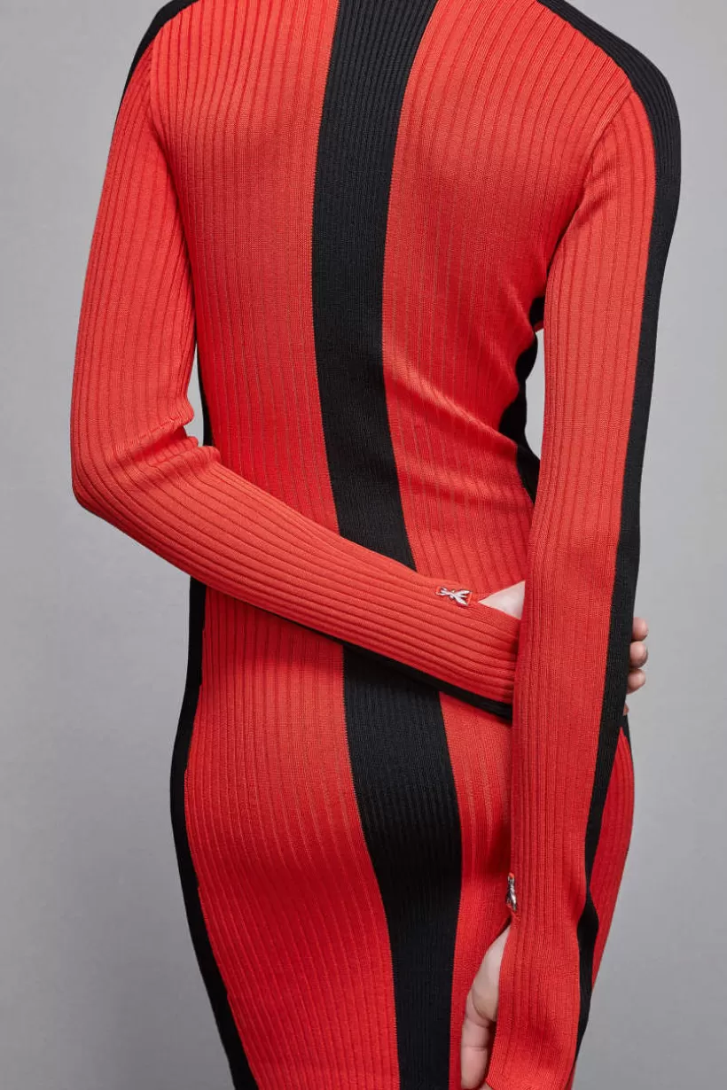 Patrizia Pepe przedstawia sukienkę z domieszką wiskozy w prążki i o kroju slim, która wyróżnia się wspaniałym d…
