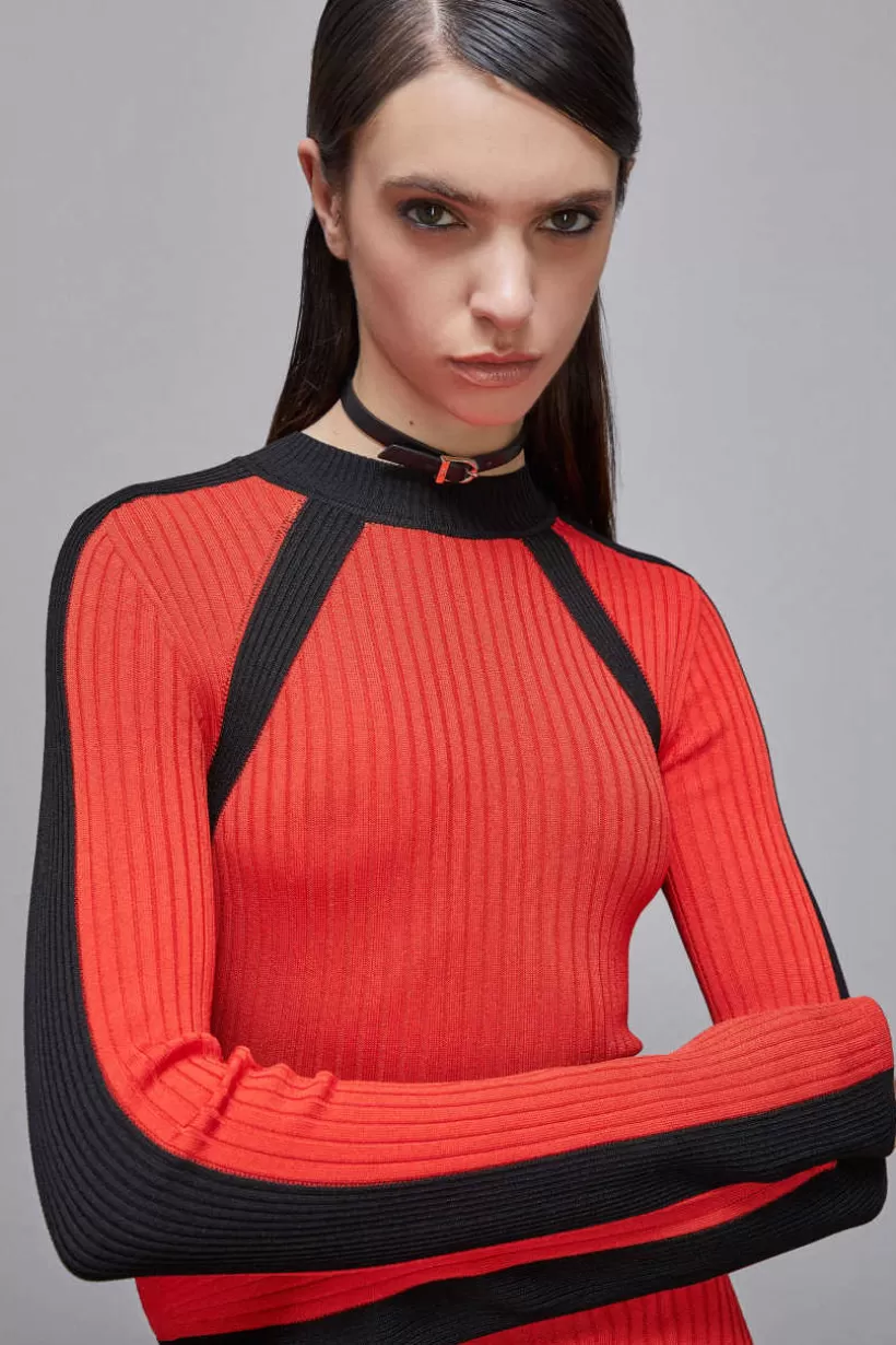 Patrizia Pepe przedstawia sukienkę z domieszką wiskozy w prążki i o kroju slim, która wyróżnia się wspaniałym dwukolorowym, optycznym efektem. Załóż ją, aby poczuć się kobieco i aby podkreślić swoją sylwetkę.