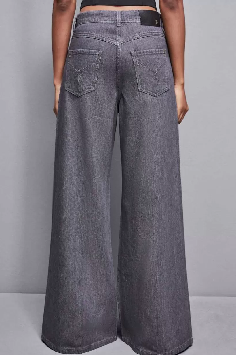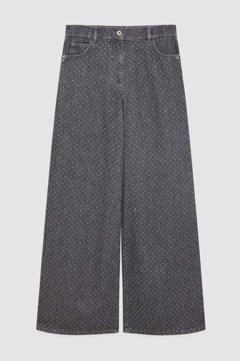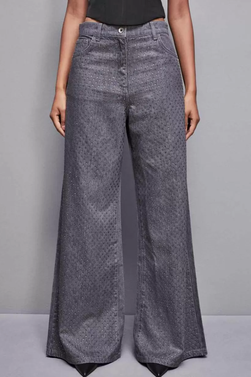 Szare jeansy wide leg z niskim stanem zdobione kryształkami^Patrizia Pepe Sale