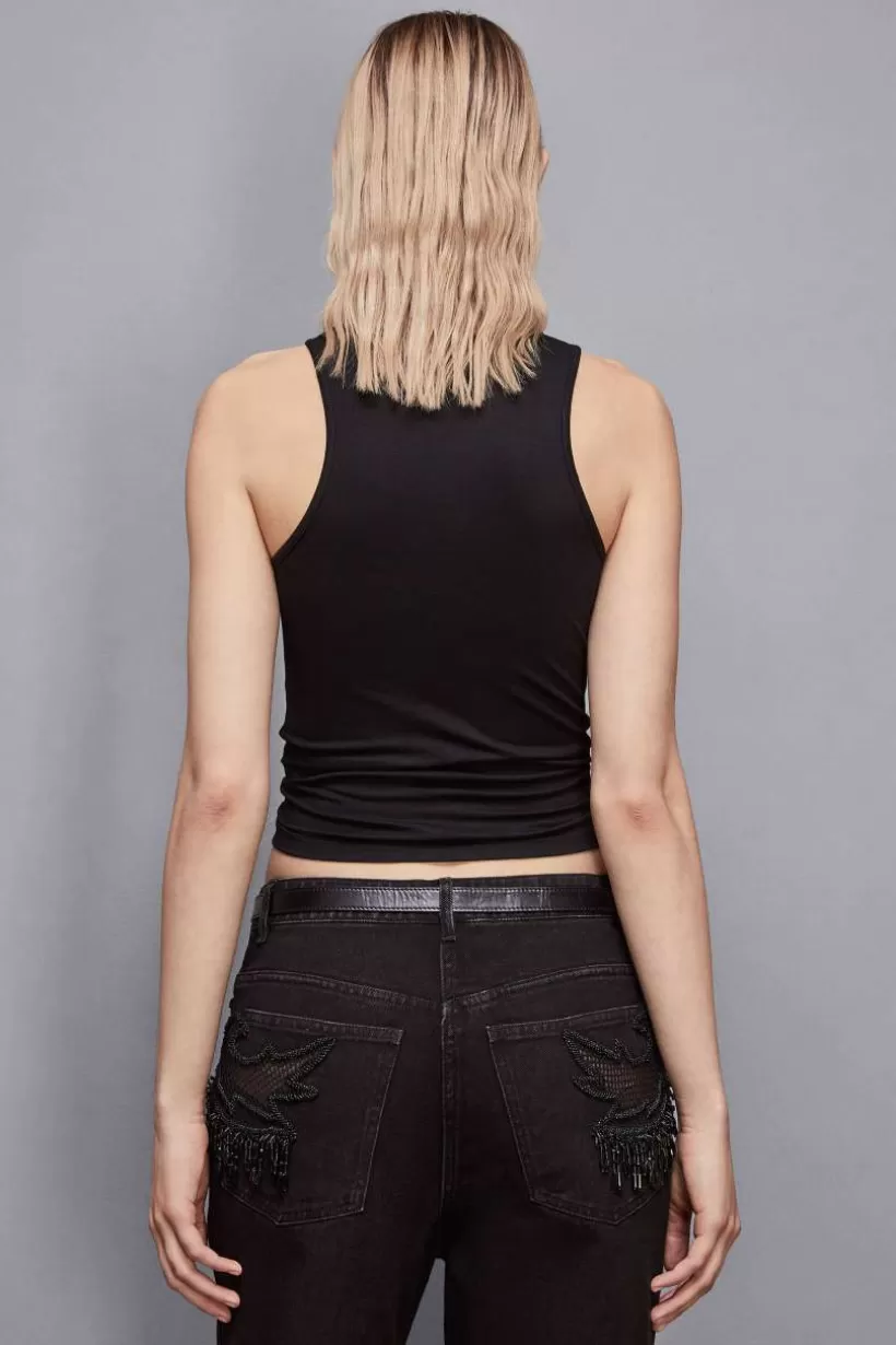 Dodaj charakteru swoim codziennym stylizacjom dzięki nowemu tank topowi marki Patrizia Pepe. Element garderoby o kroju fit slim ma inkrustowany slogan i nadruk Fly.