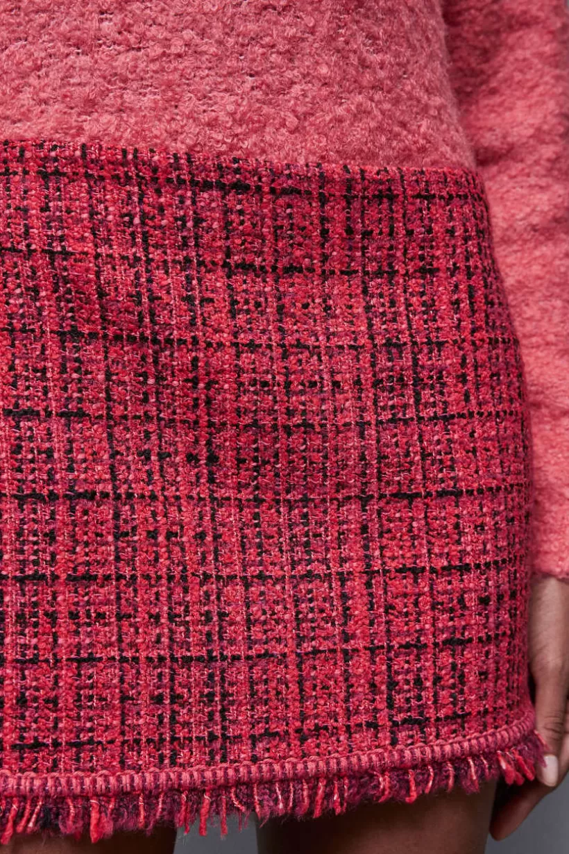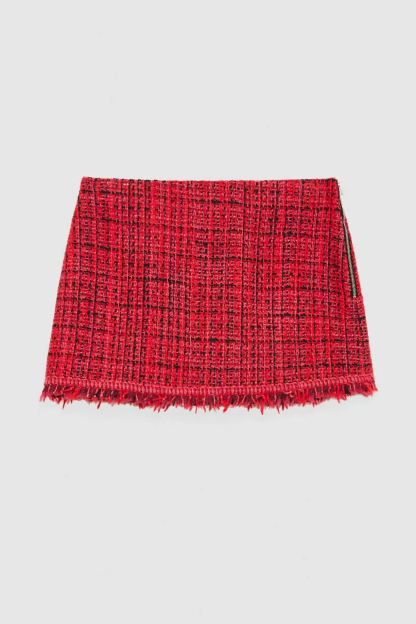 Tweed, solidny materiał o brytyjskim rodowodzie w nowej odsłonie w oryginalnej i uwodzicielskiej odzieży. Spódniczka mini z frędzlami u dołu, które nadają stylizacji zuchwały charakter.