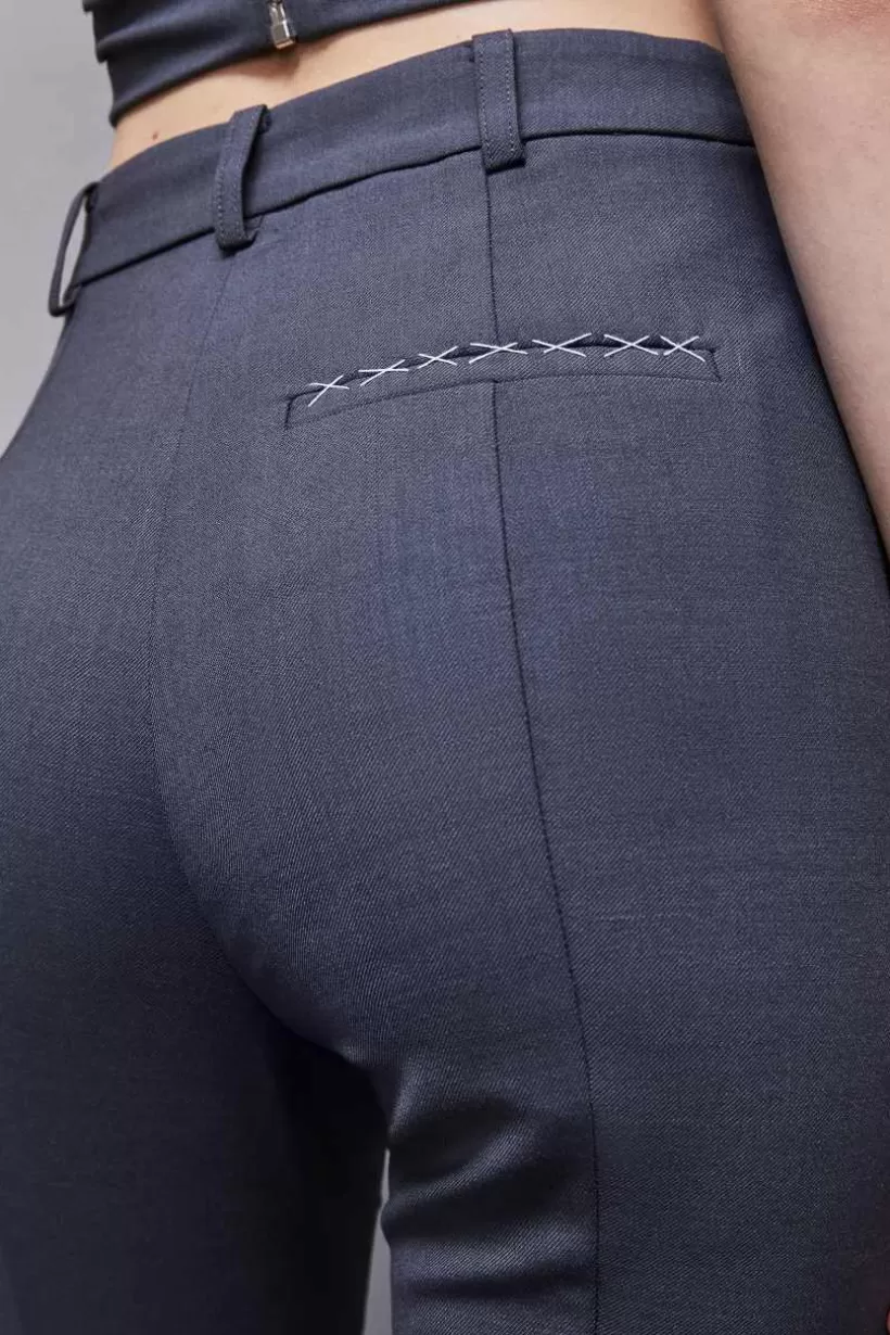 Wyrafinowany urok wełnianych spodni Essential. Wykończone kontrastowymi szwami z tyłu. Połącz je z koszulą z kolekcji, aby uzyskać elegancką i kobiecą stylizację.