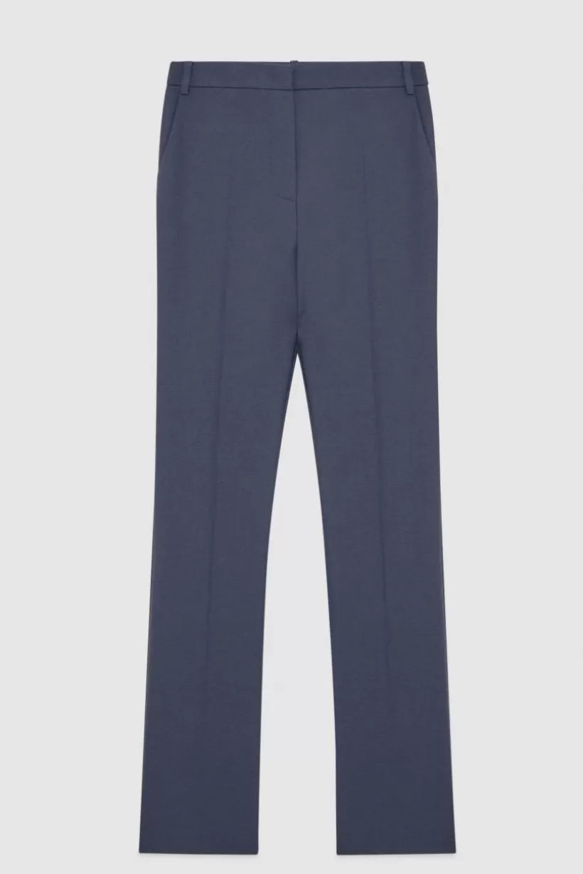 Wyrafinowany urok wełnianych spodni Essential. Wykończone kontrastowymi szwami z tyłu. Połącz je z koszulą z kolek…